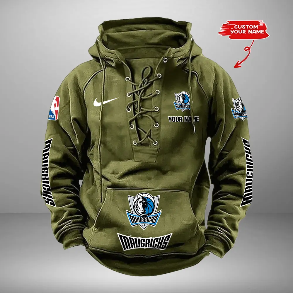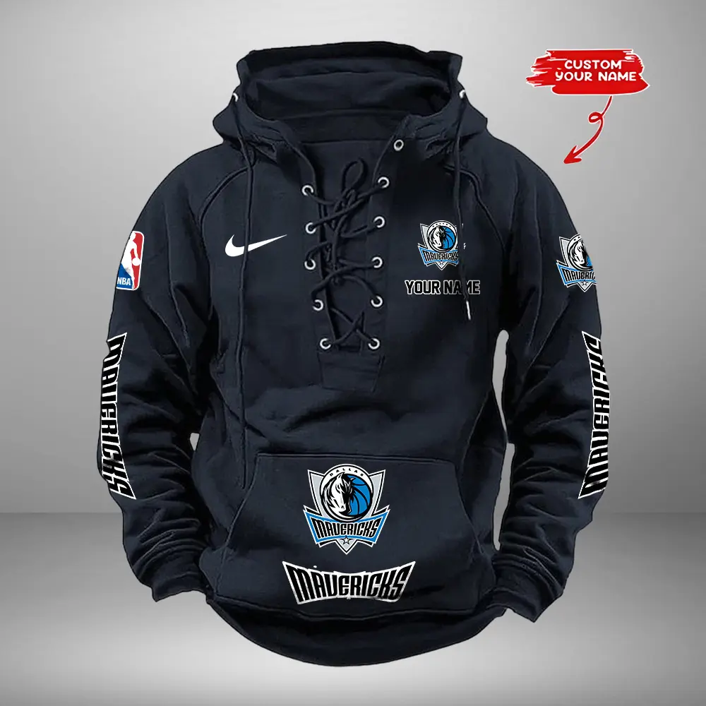 Dallas Mavericks NBA Retro Lace Up Hoodie Personalized Mens Vintage