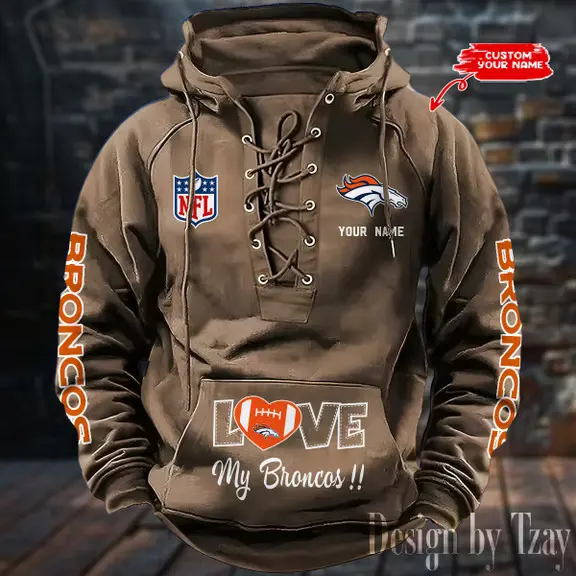 Denver Broncos NFL Hooded Lace Up Hoodie Mens Fan Gear