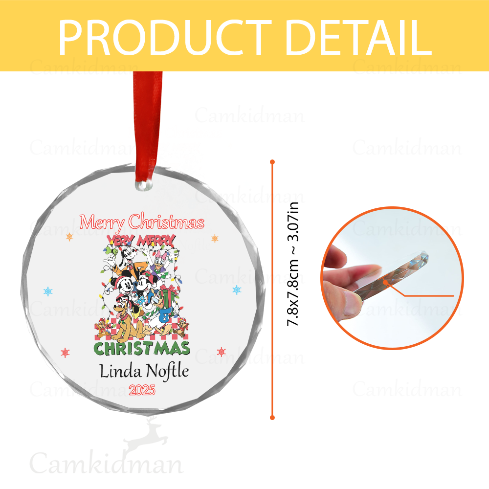 Disney Characters Glass Christmas Ornament 2025 Personalized Name Tree gifts family
