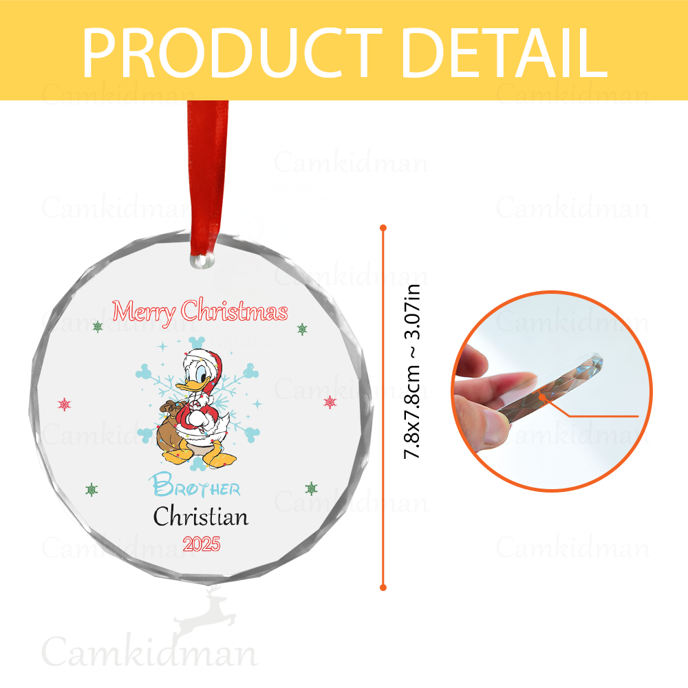 Disney Donald Duck Brother 2025 Glass Christmas Ornament 2025 Personalized Name