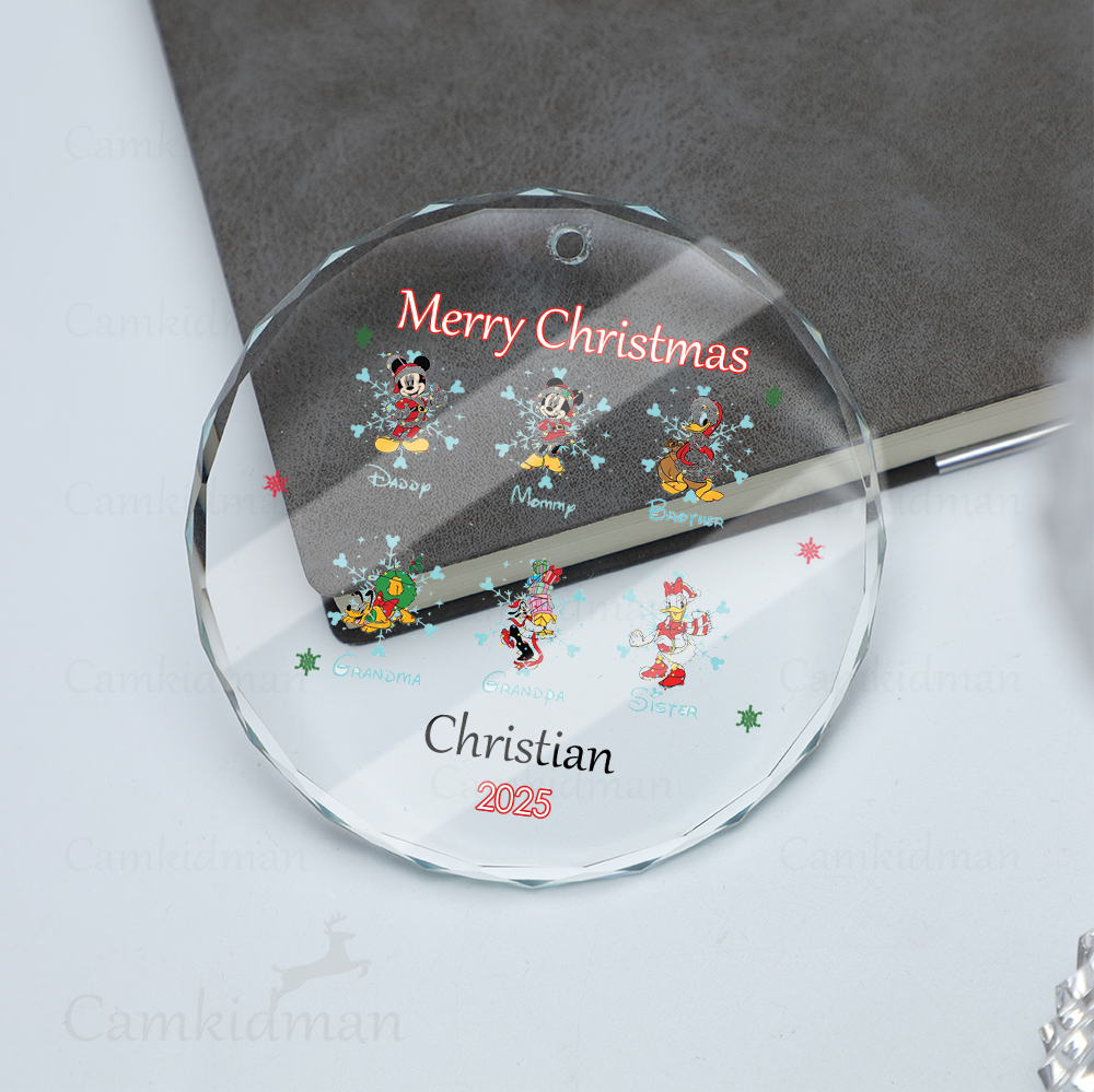 Disney Mickey and Friends Group Personalized Name 2025 Glass Ornament Round