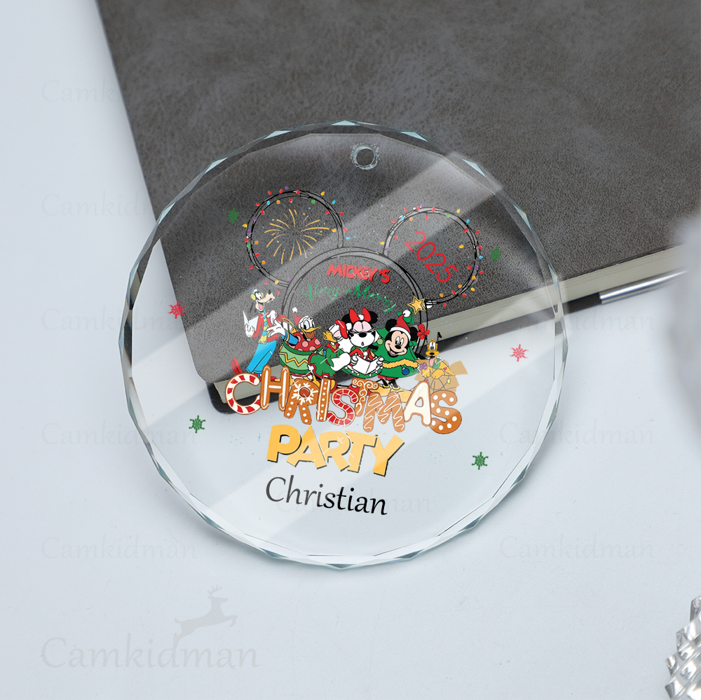 Disney Mickey Minnie Donald Holiday Party 2025 Glass Christmas Ornament 2025 Personalized Name