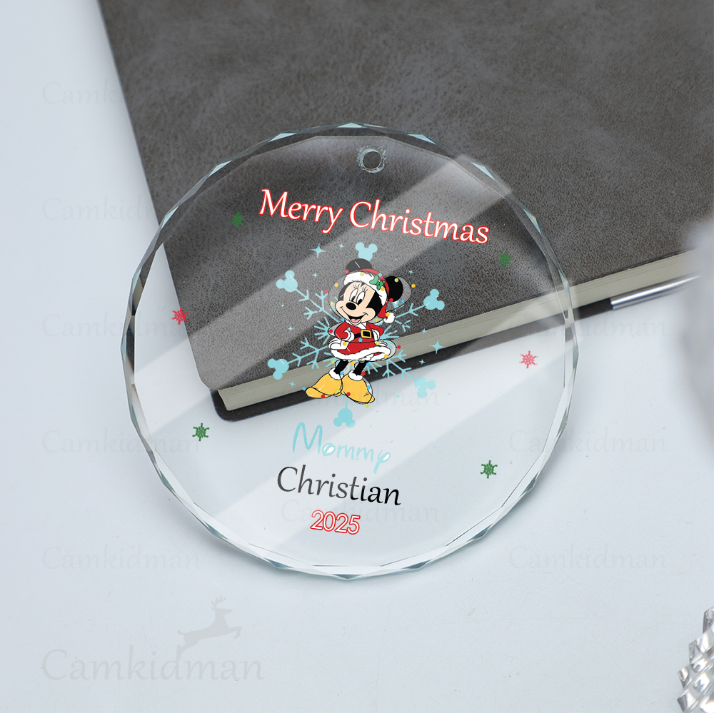 Disney Minnie Mouse Mom 2025 Glass Christmas Ornament 2025 Personalized Name Decoration
