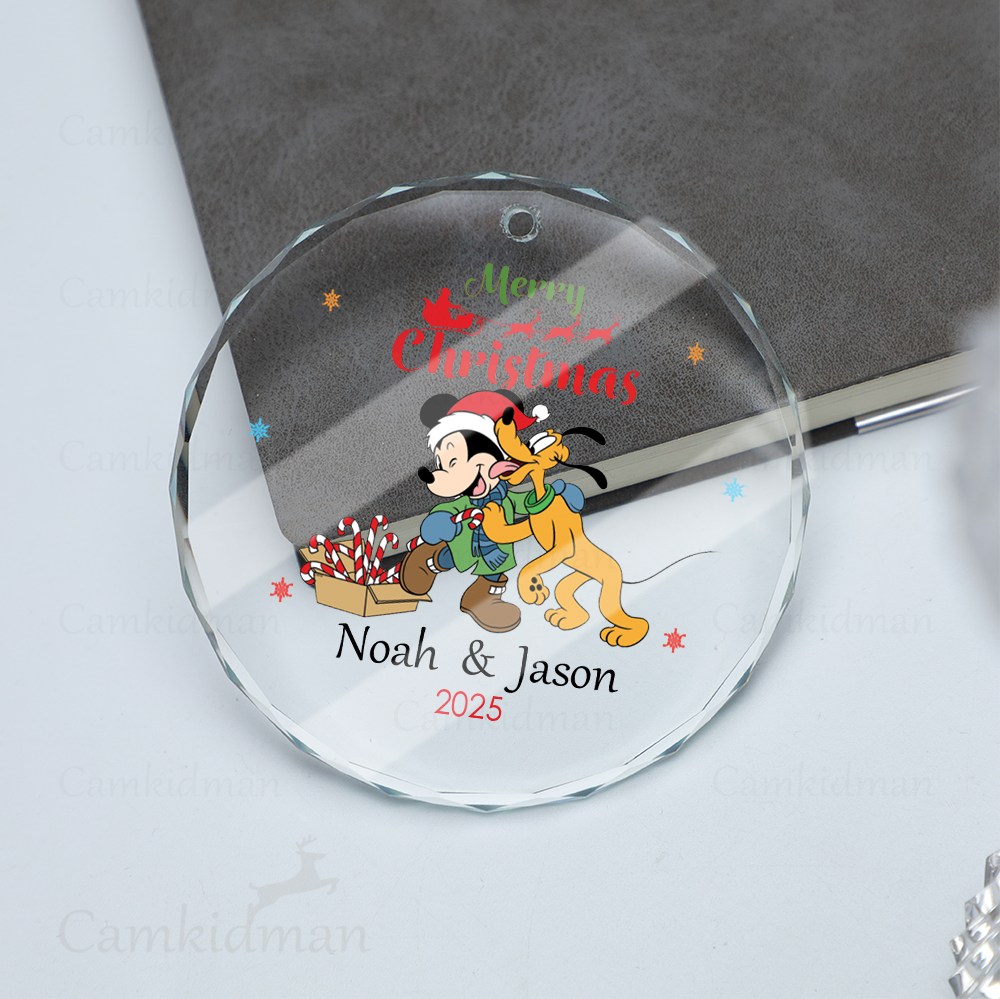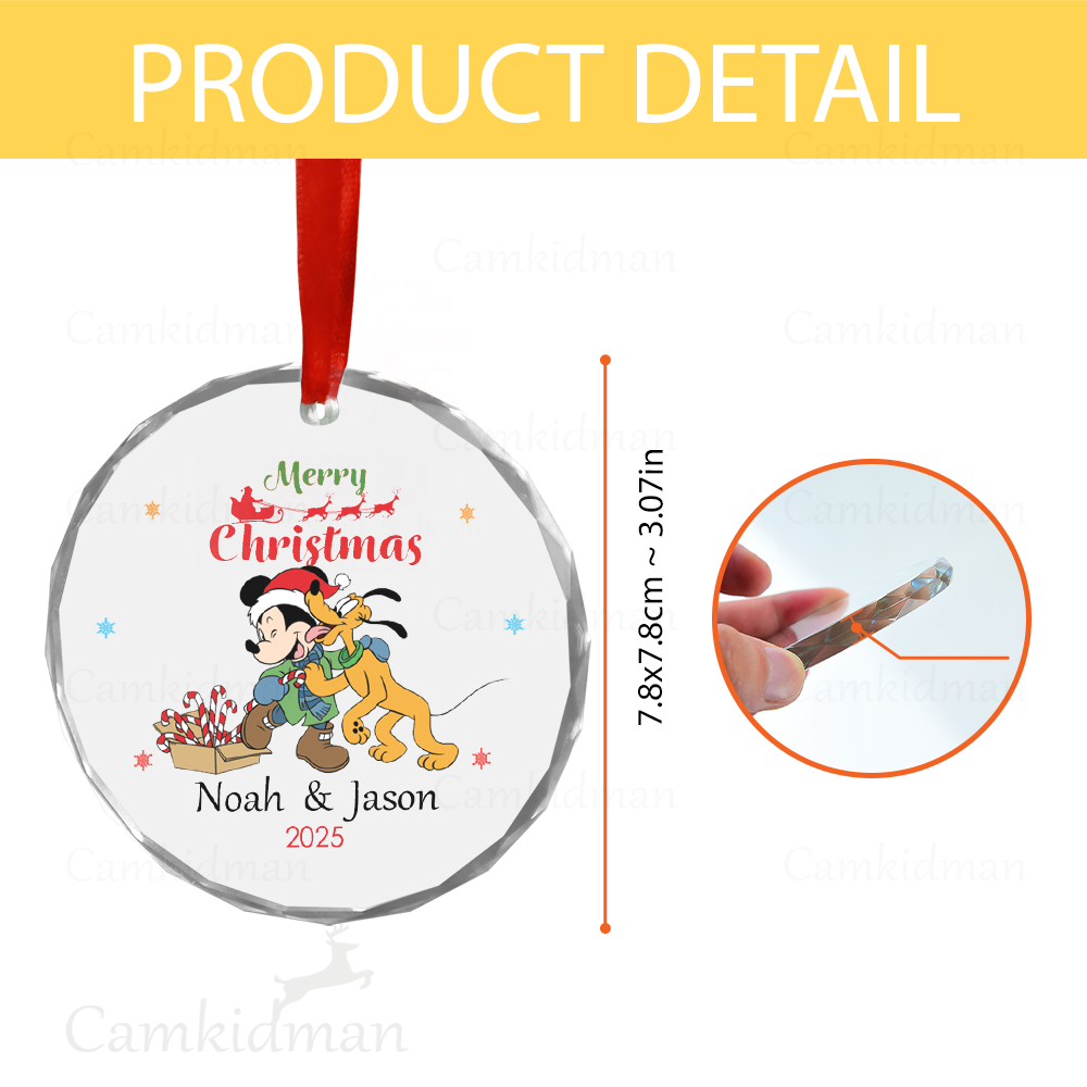 Dog Pulling Sleigh Glass Christmas Ornament 2025 Personalized Name gifts kids