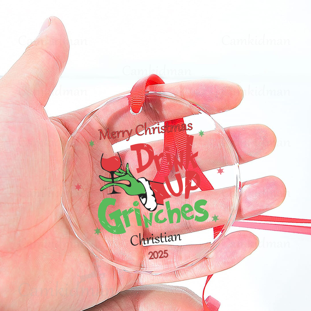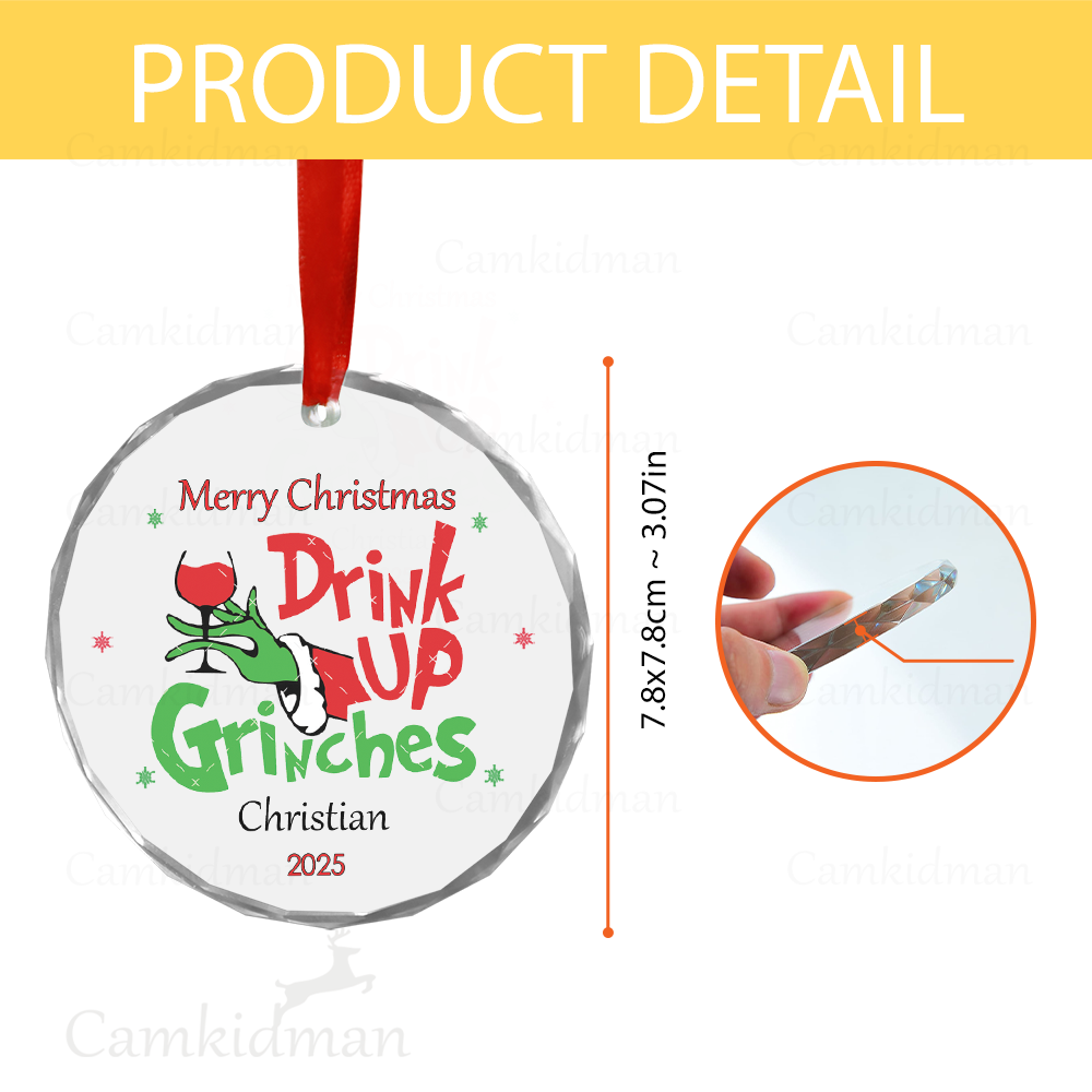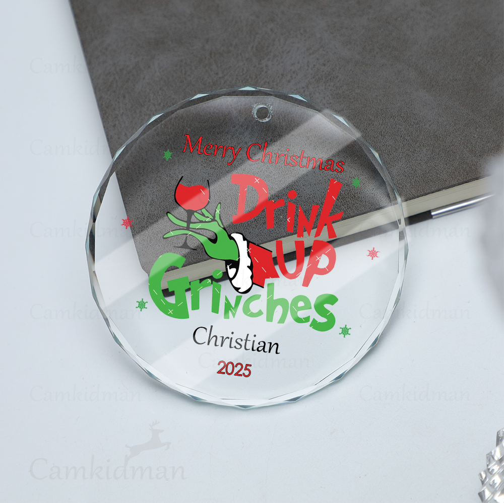 Drink Up Grinches Glass Christmas Ornament 2025 Personalized Name Gift gifts family