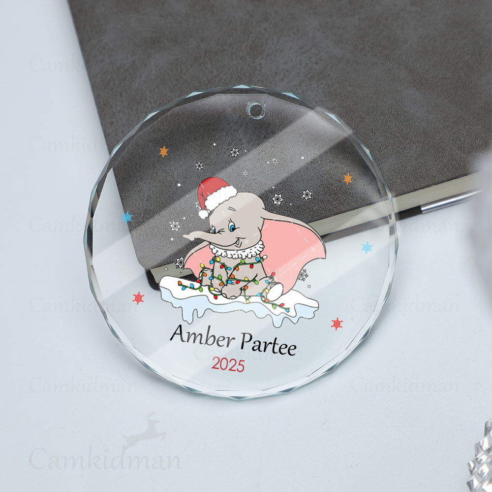 Be the first to review “Dumbo Santa Hat Personalized Name 2025 Glass Ornament”