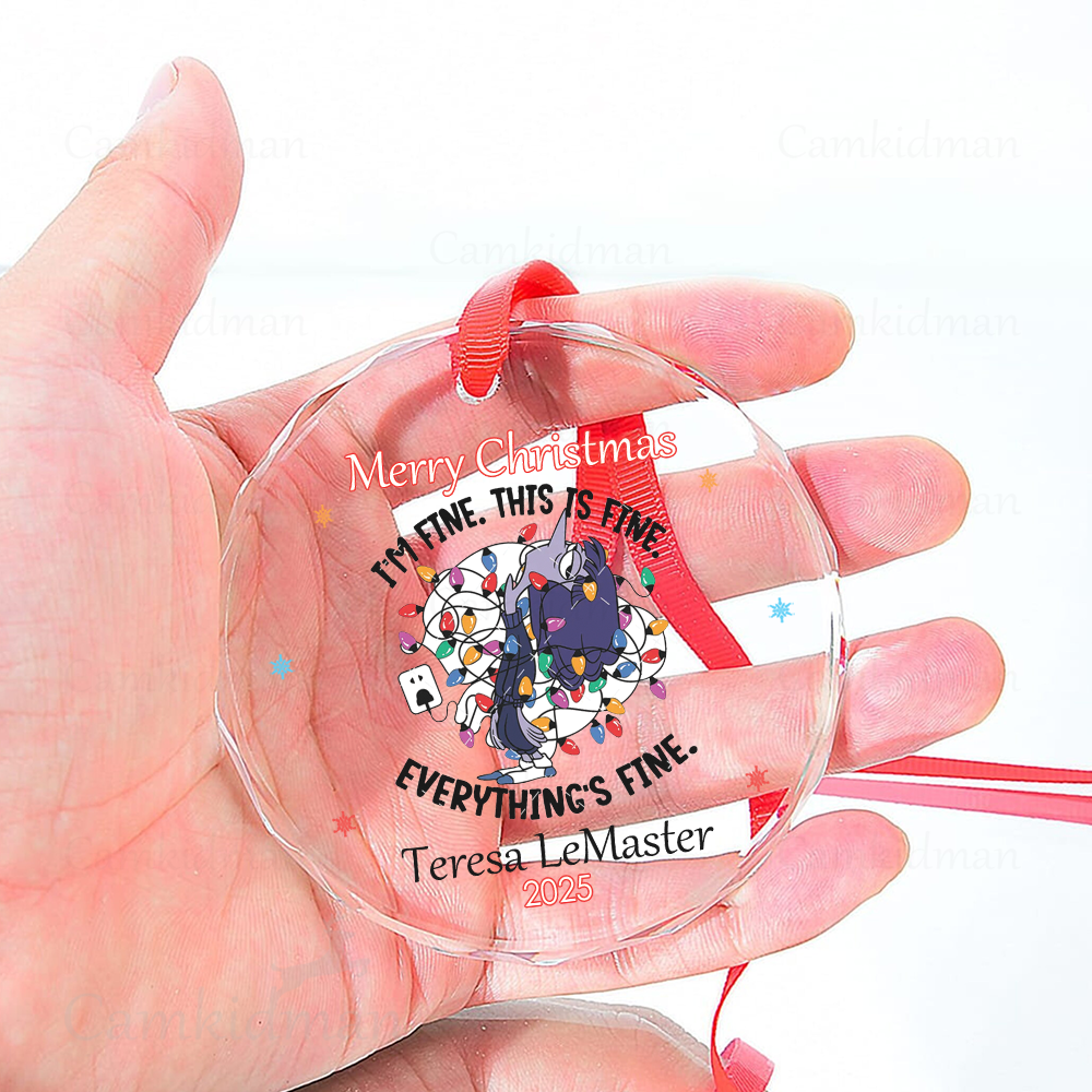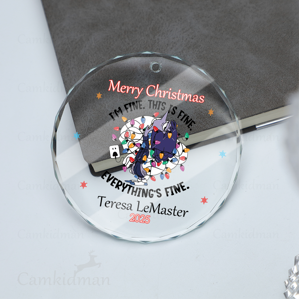 Everything Is Fine Purple Villain gifts family Glass Christmas Ornament