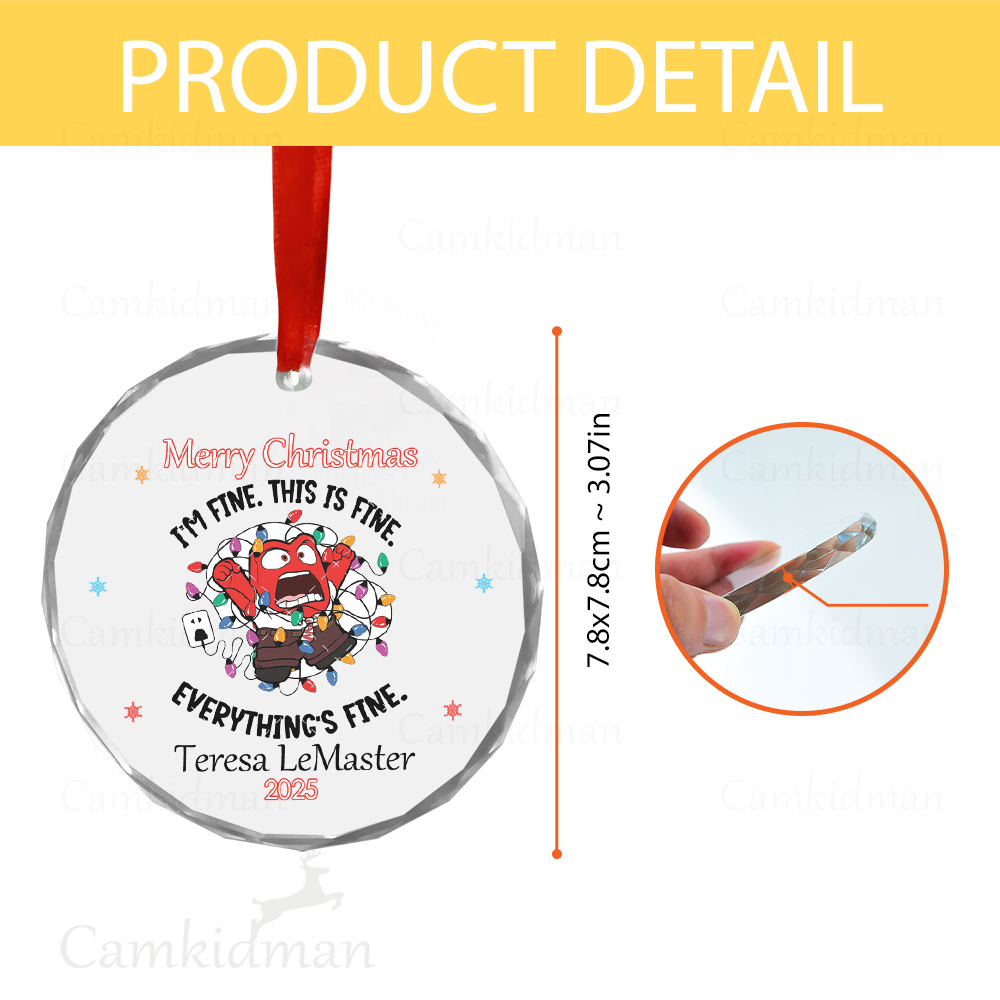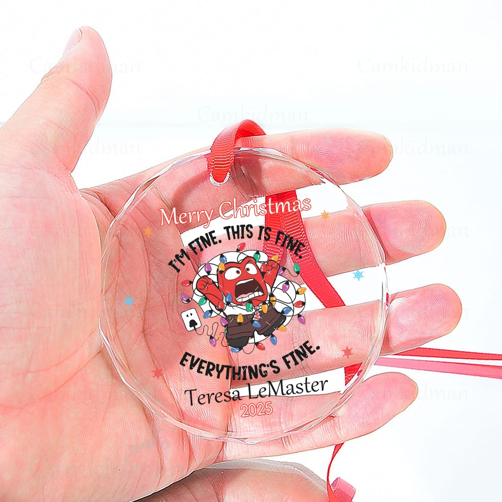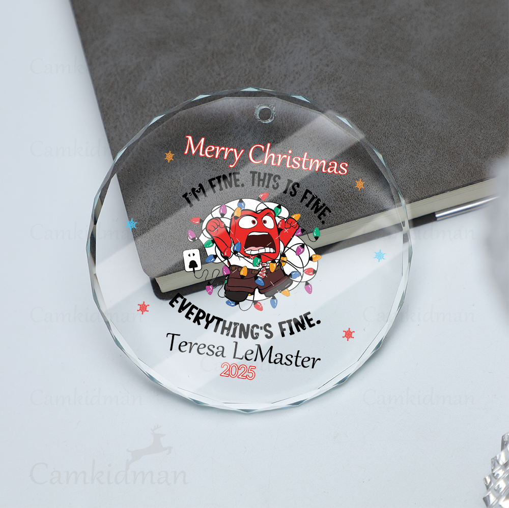 Everything Is Fine Red Deadpool Personalized Name 2025 Glass Ornament tree