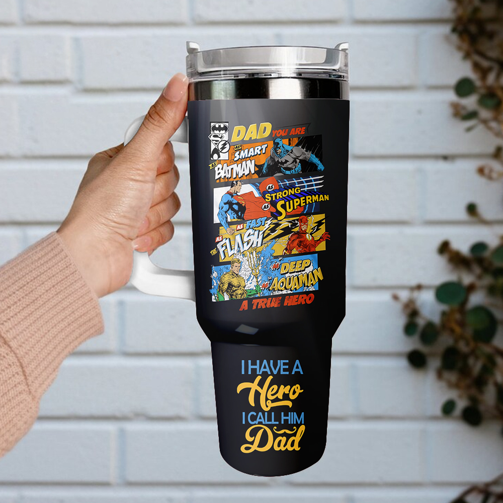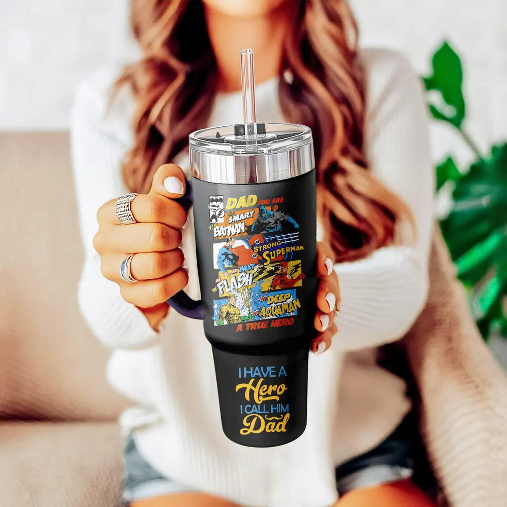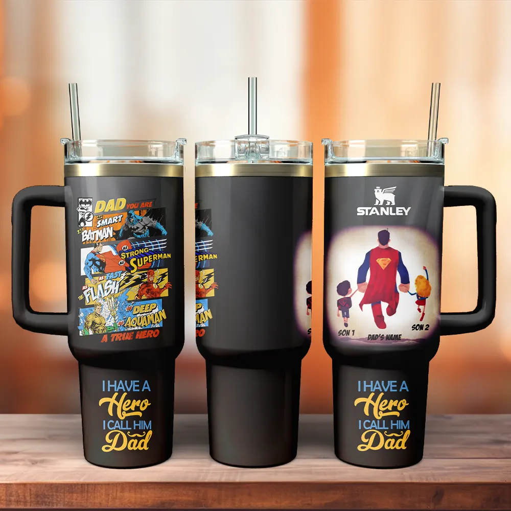 Father?? Day x Superman Custom Stanley Quencher 40oz Stainless Steel Tumbler With Handle