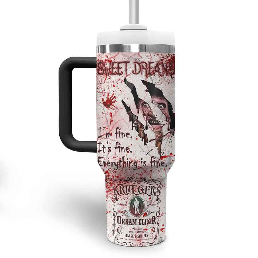 Freddy Krueger Movies Custom Stanley Quencher 40oz Stainless Steel Tumbler With Handle