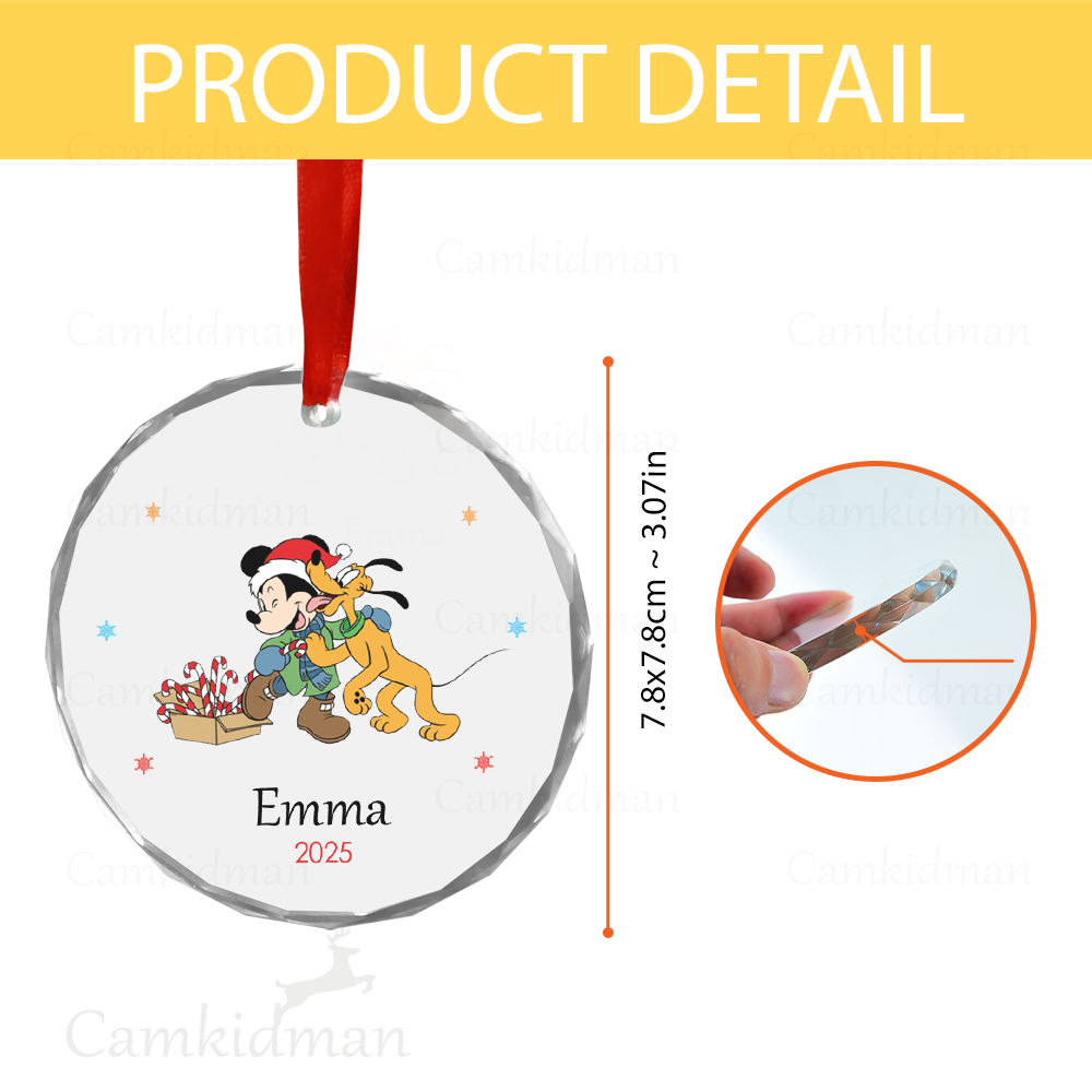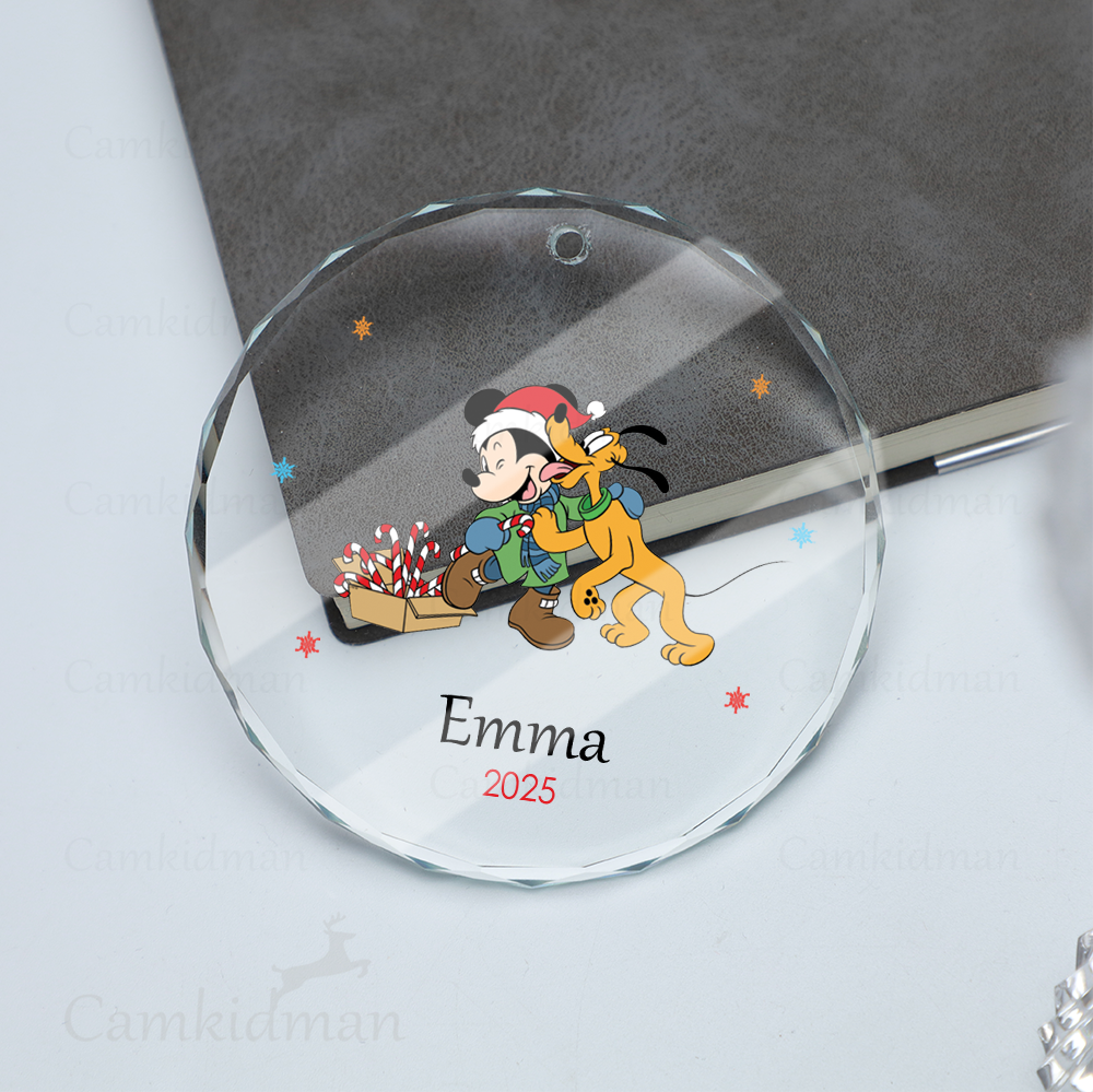 Goofy Pulling Sleigh Personalized Name 2025 Glass Ornament gifts family