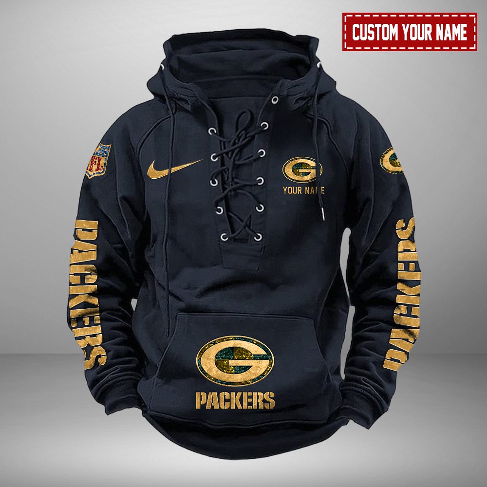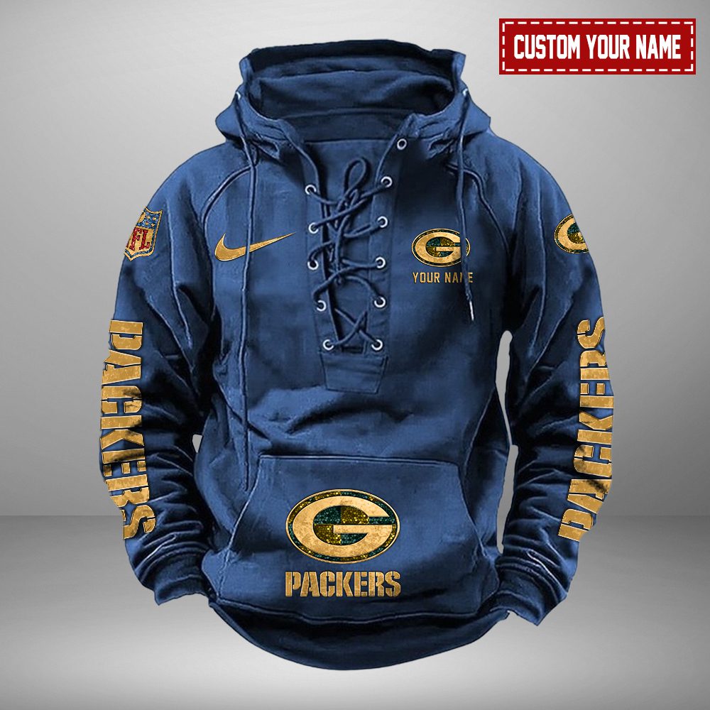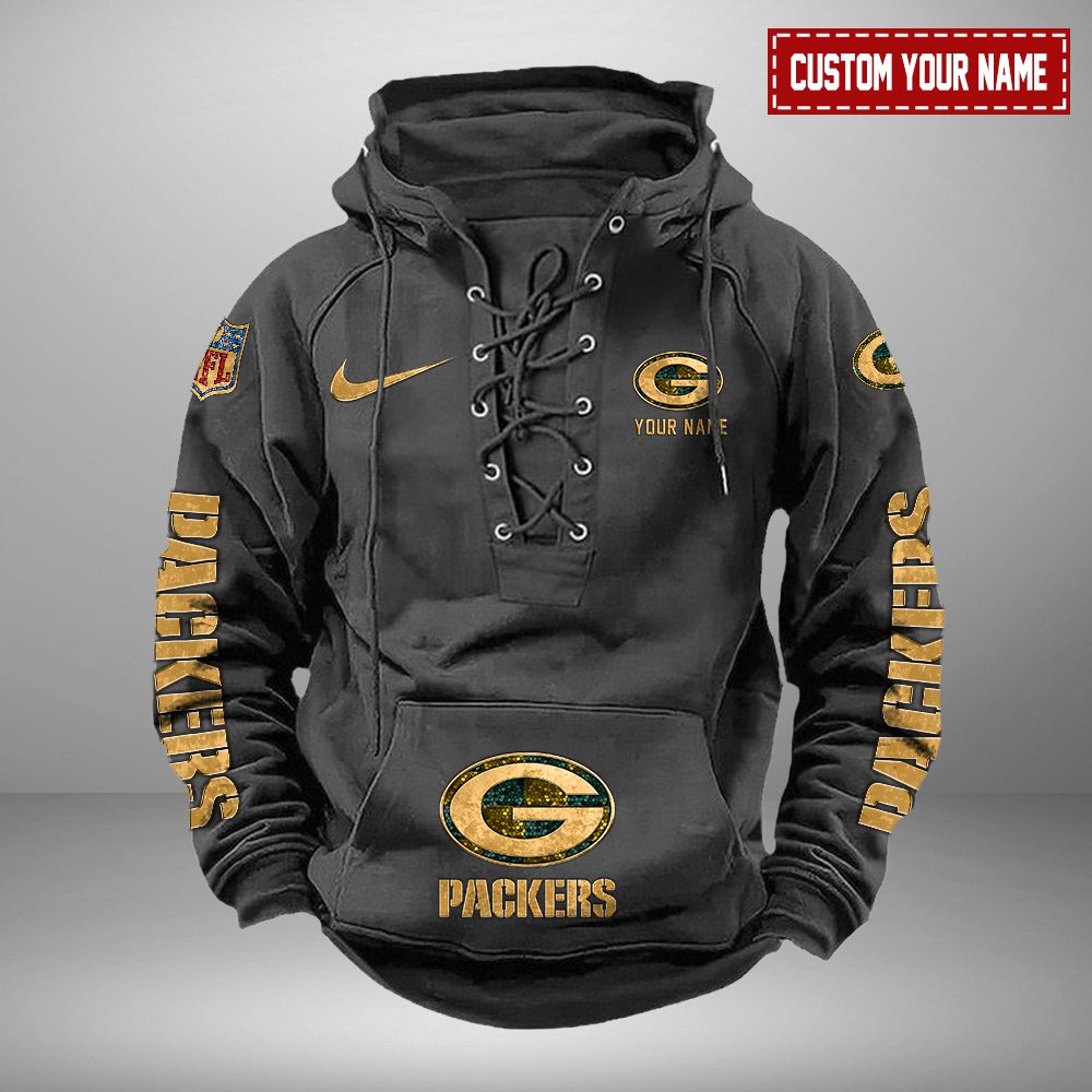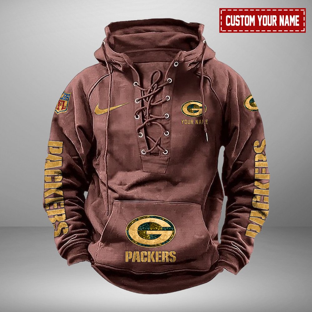 Green Bay Packers NFL Retro Lace Up Hoodie Personalized Mens Throwback