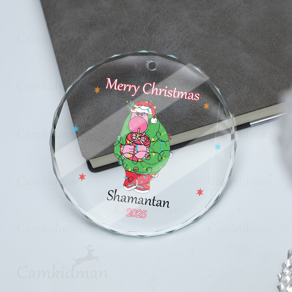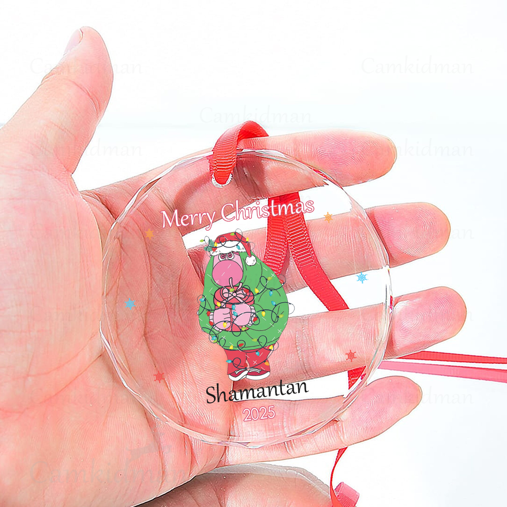 Green Monster Personalized Name 2025 Glass Ornament Holiday Cartoon Keepsake