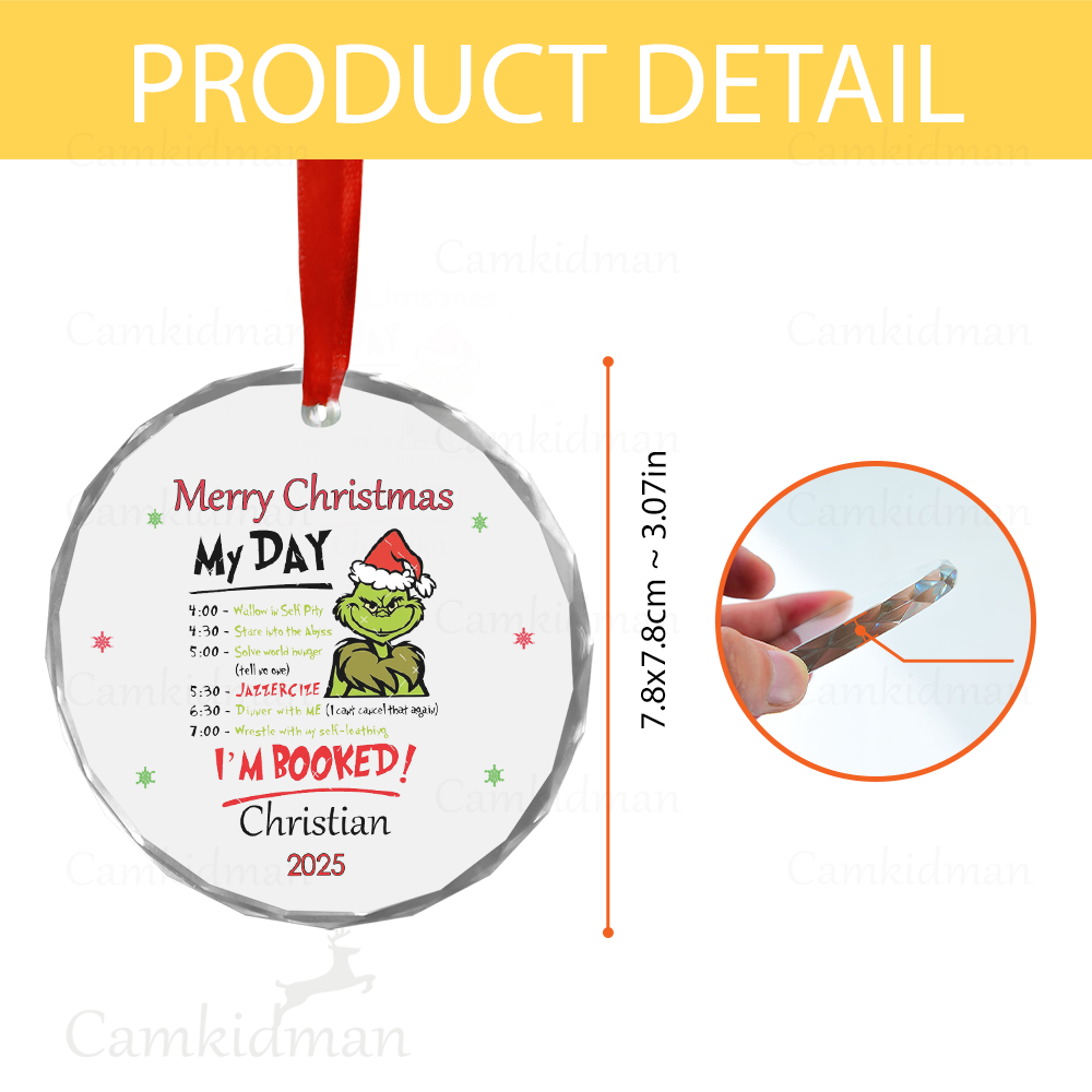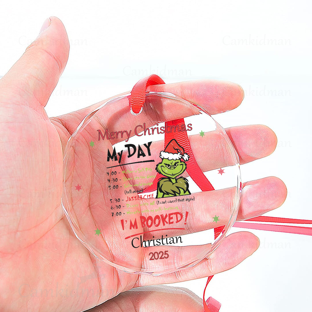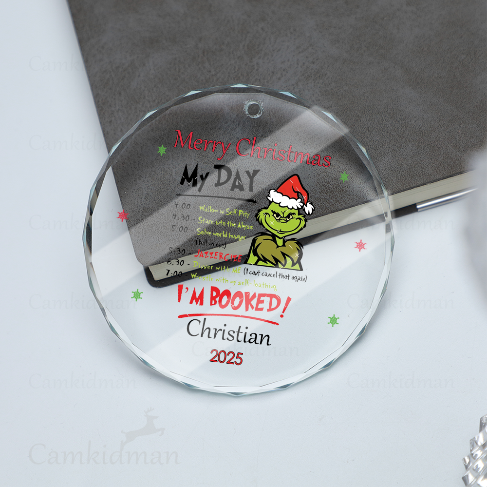 Grinch Funny Quote My Day Booked 2025 Holiday Glass Christmas Ornament