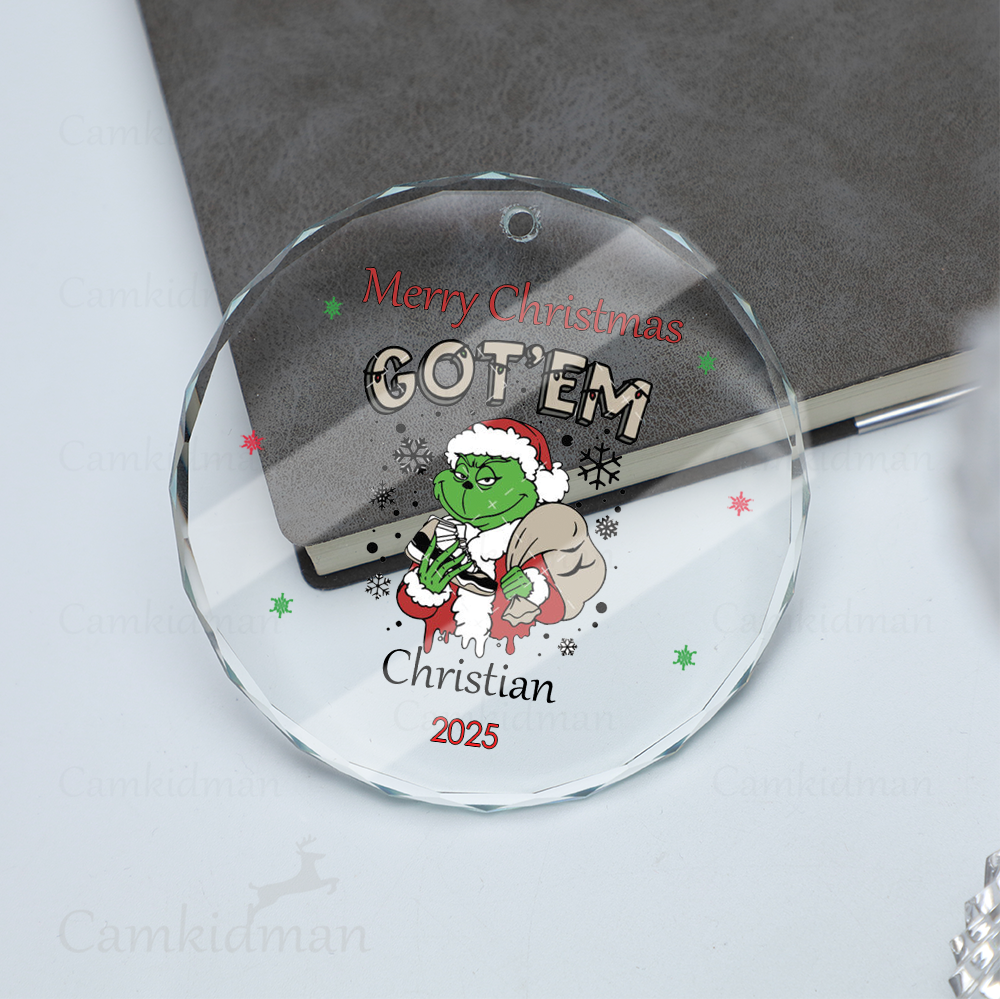 Grinch Got Em Funny Glass Christmas Ornament 2025 Personalized Name