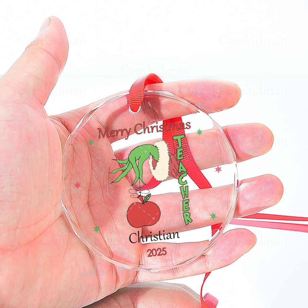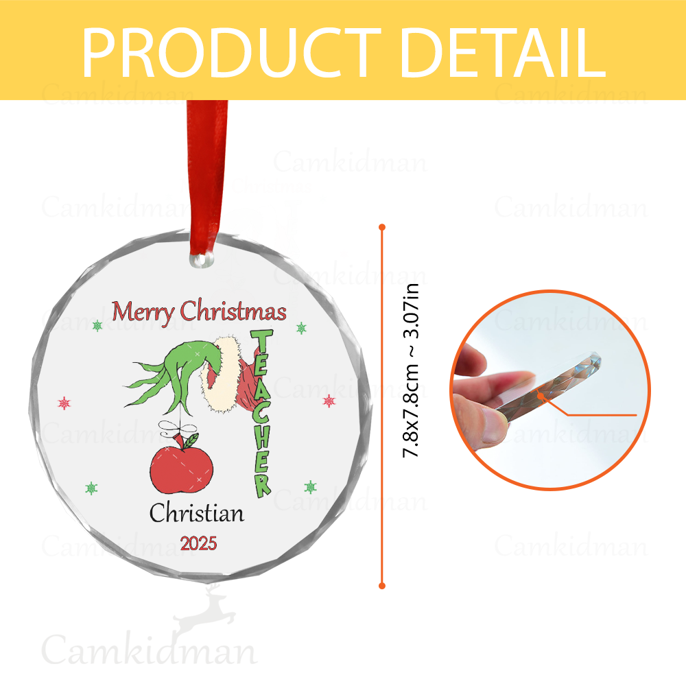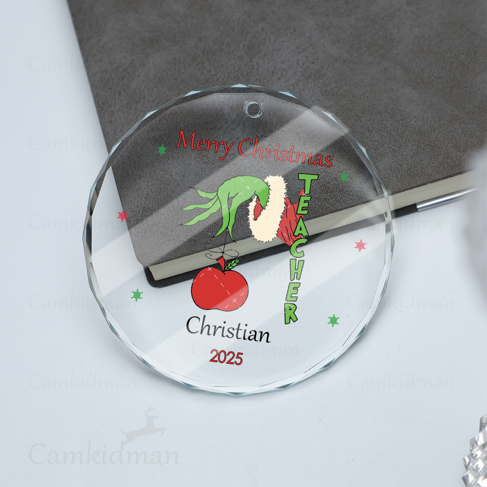Grinch Hanging Funny Holiday Decor gifts kids Glass Christmas Ornament
