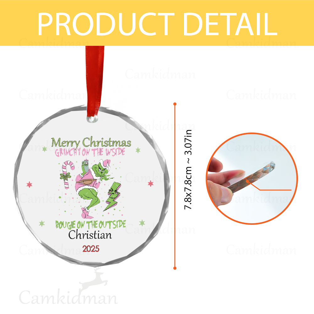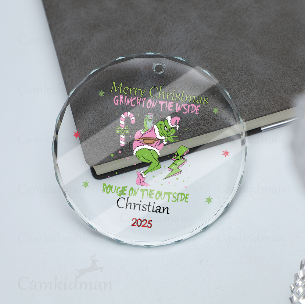 Grinch mas Holiday Decor Personalized Name 2025 Glass Ornament gifts