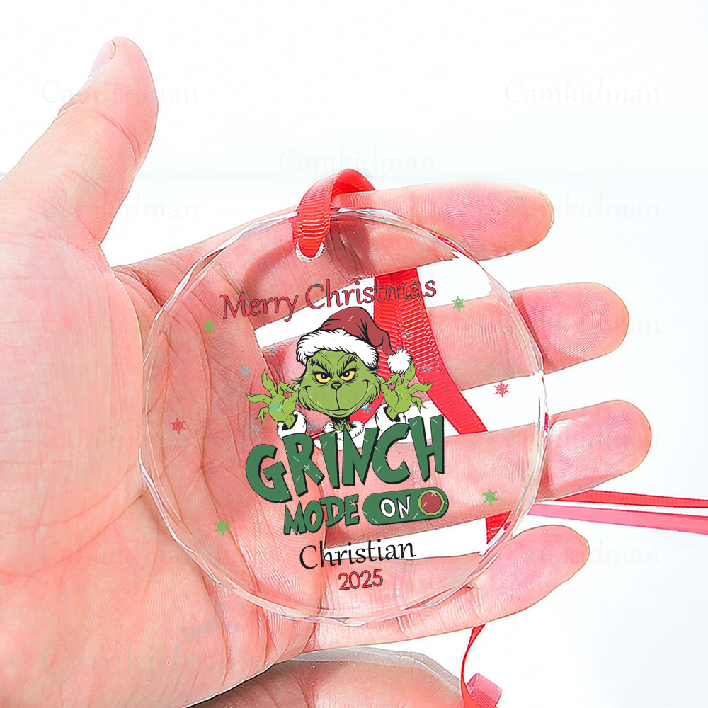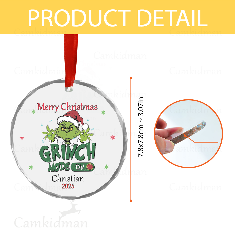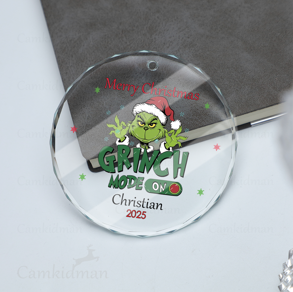 Be the first to review “Grinch Mode On 2025 Glass Christmas Ornament 2025 Personalized Name Holiday Decoration”