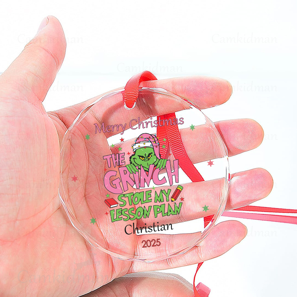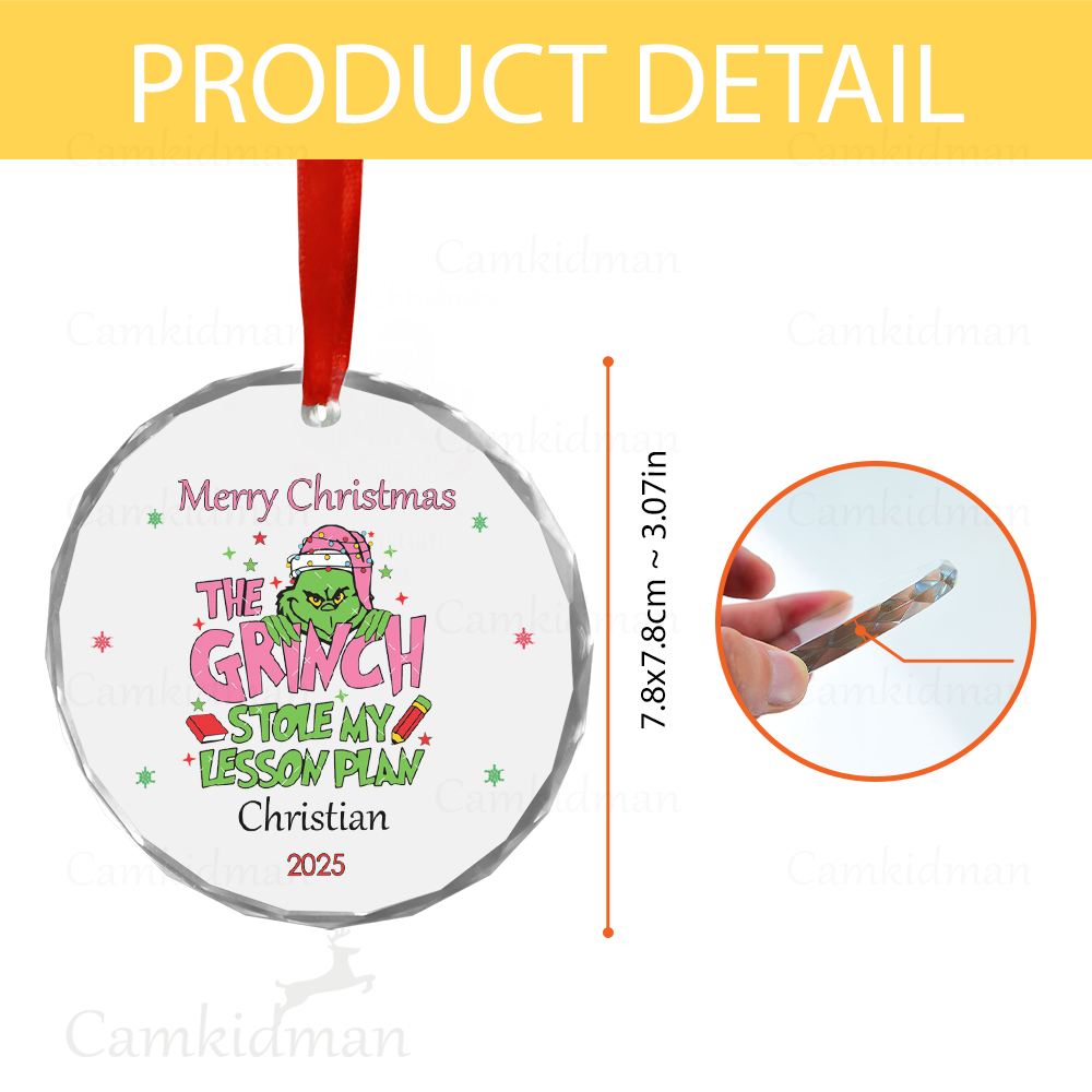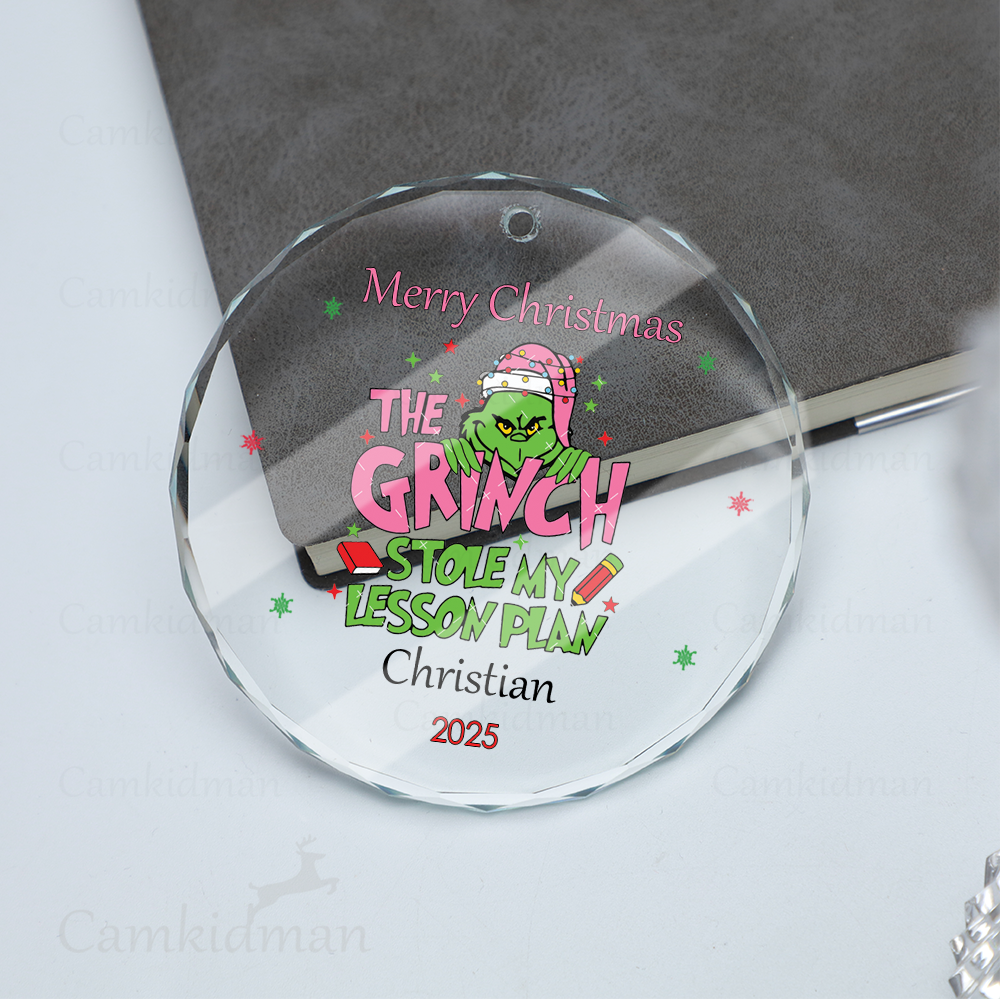 Grinch Stole My Lesson Plan Teacher Holiday Gift tree Glass Christmas Ornament