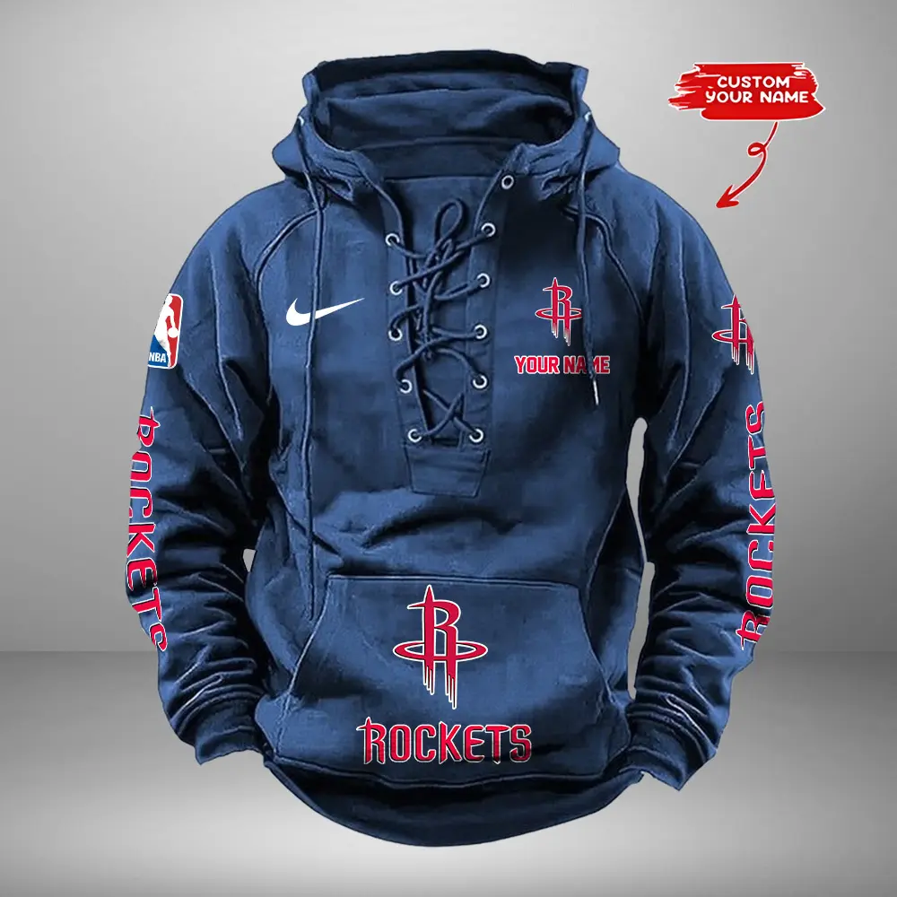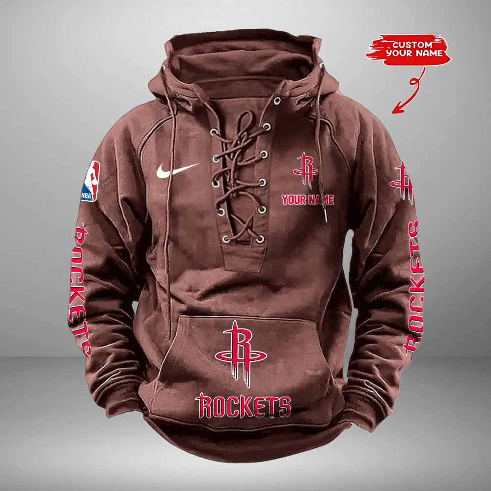 Houston Rockets NBA Retro Lace Up Hoodie Personalized Mens Vintage