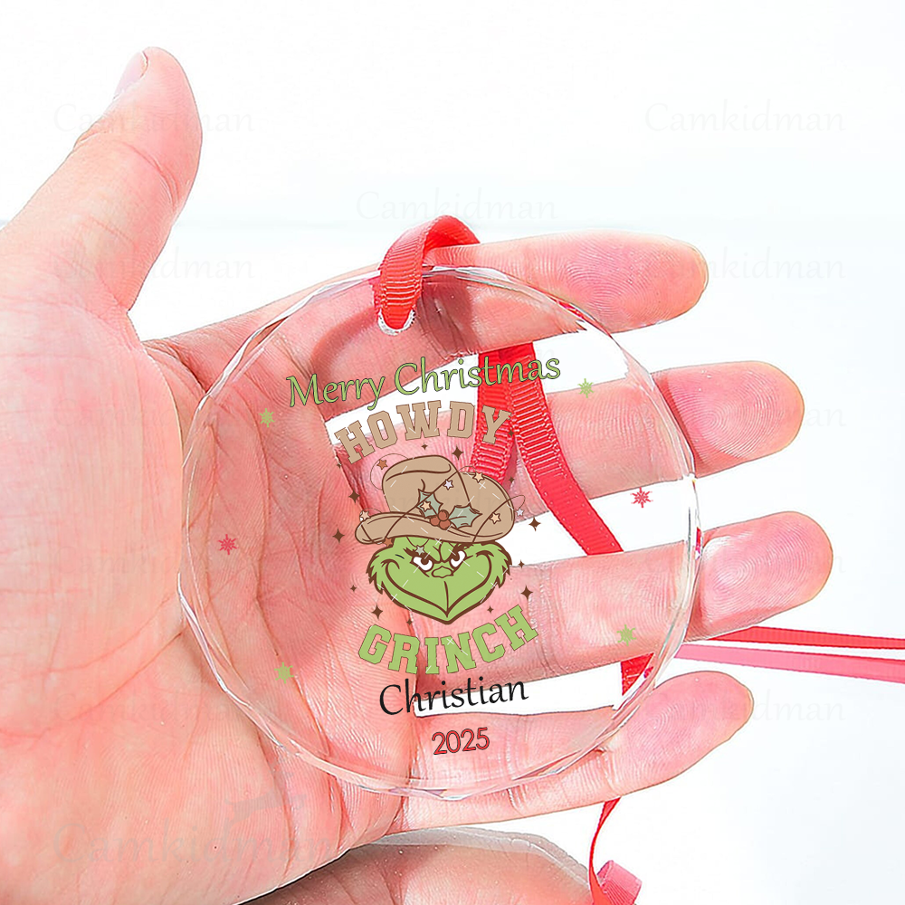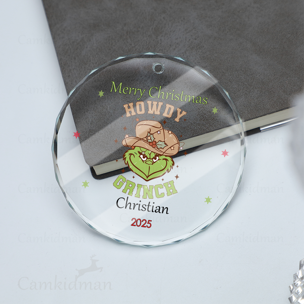 Howdy Grinch Glass Christmas Ornament 2025 Personalized Name Gift 2025