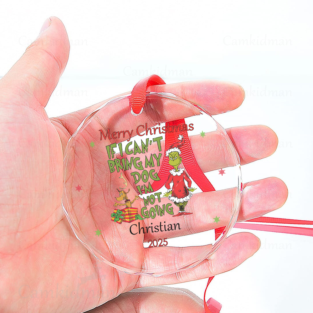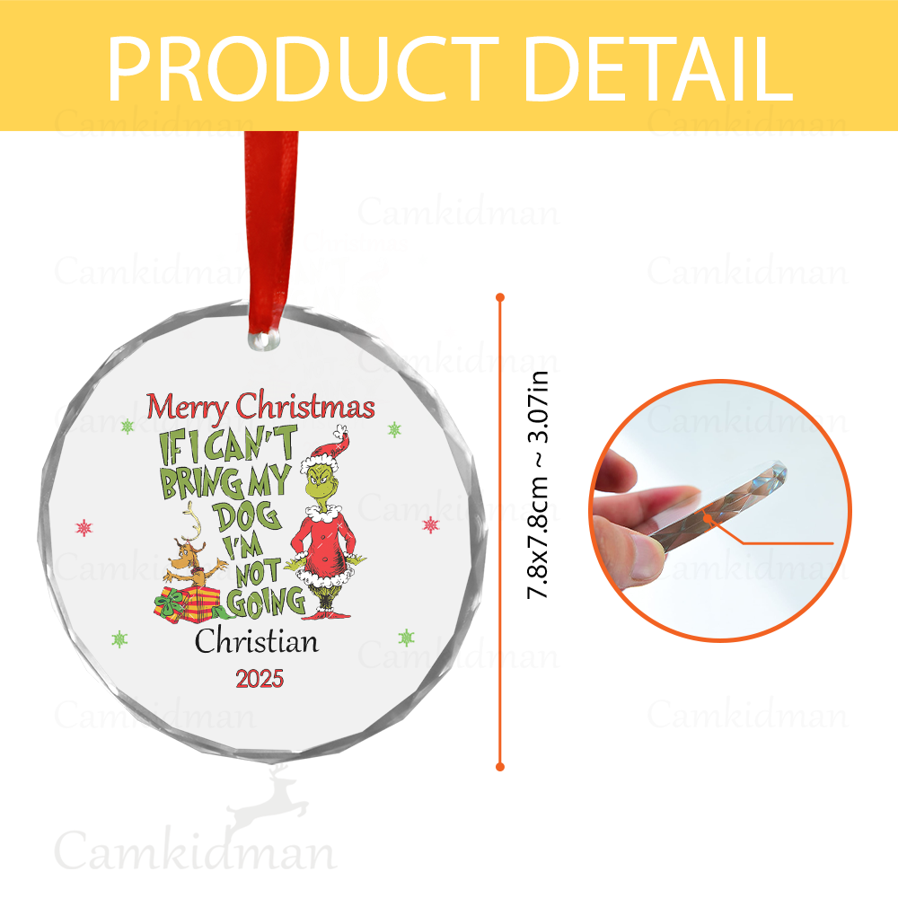 If I Cant Bring My Dog Im Not Going Grinch 2025 Holiday Glass Christmas Ornament