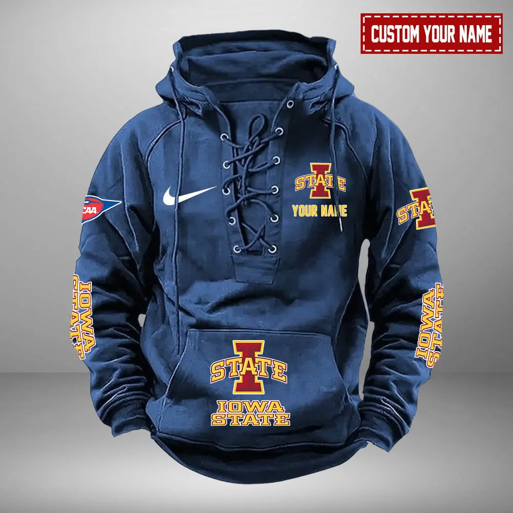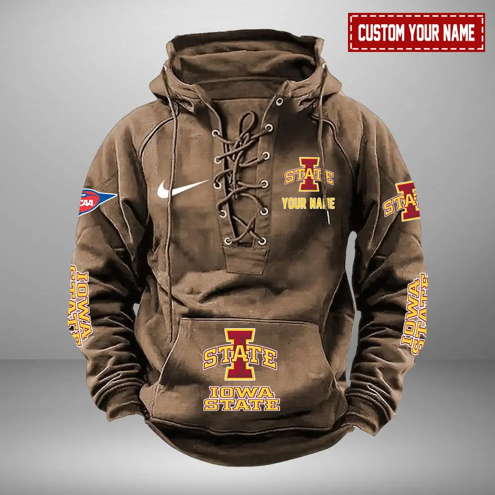 Iowa State Cyclones NCAA Retro Lace Up Hoodie Custom Name Mens Throwback