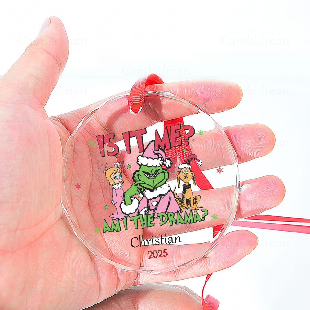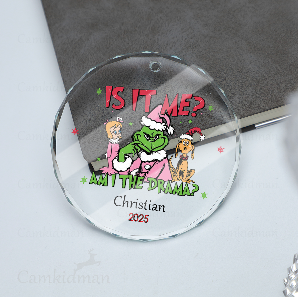 Is It Me All The Drama Grinch Holiday Decor 2025 Glass Christmas Ornament