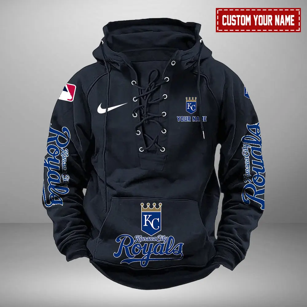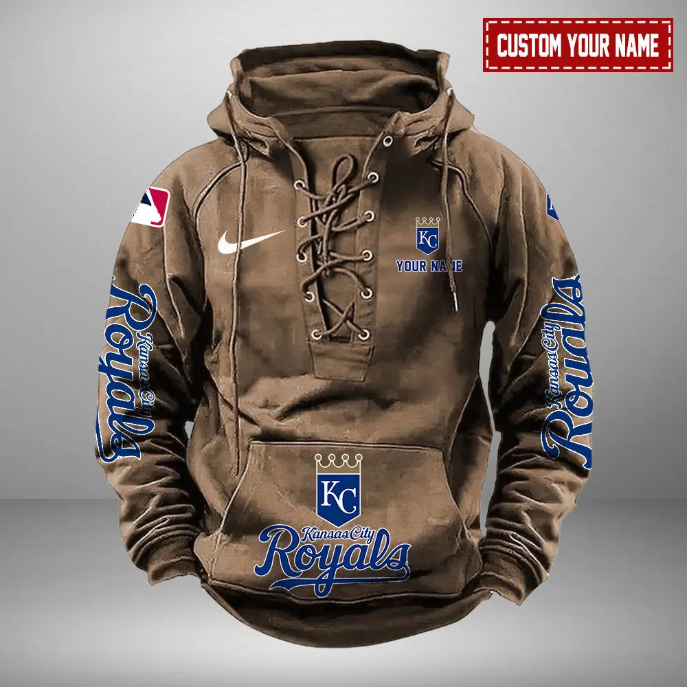 Kansas City Royals MLB Retro Lace Up Hoodie Personalized Mens Pullover