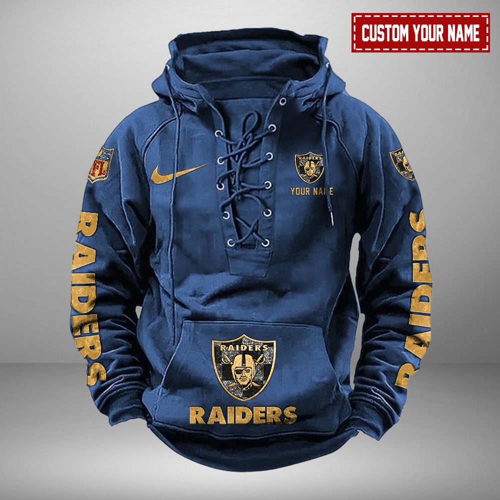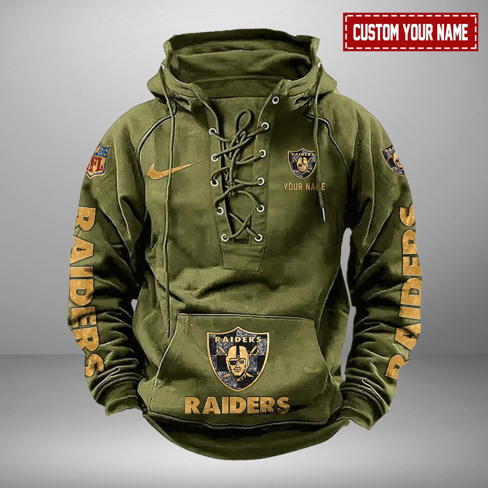 Las Vegas Raiders NFL Retro Lace Up Hoodie Personalized Mens Throwback