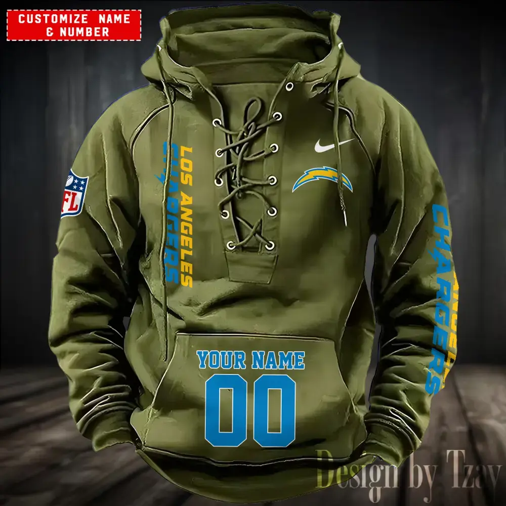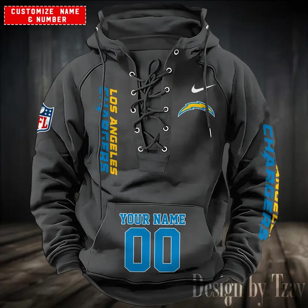 Los Angeles Chargers black Men Hooded Lace up Hoodie