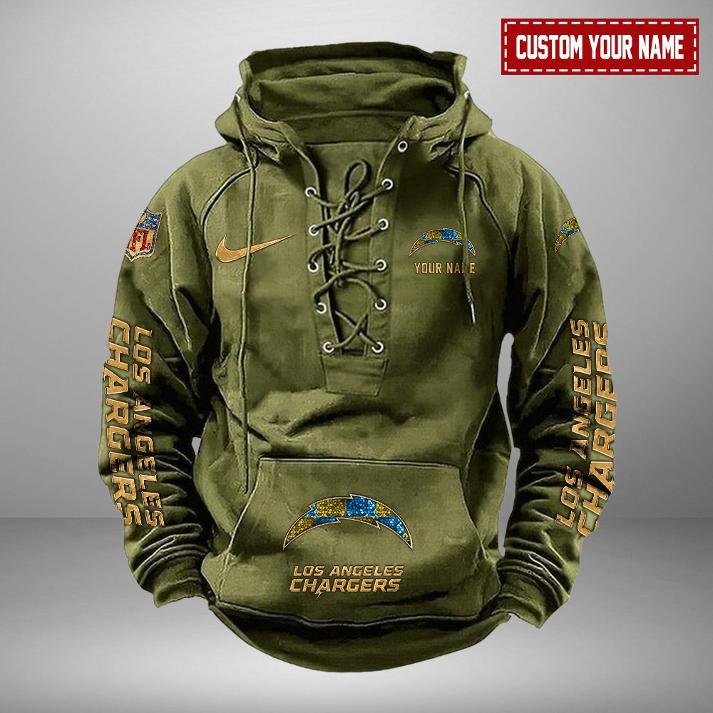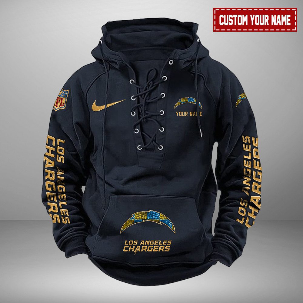 Los Angeles Chargers NFL Retro Lace Up Hoodie Personalized Mens Vintage
