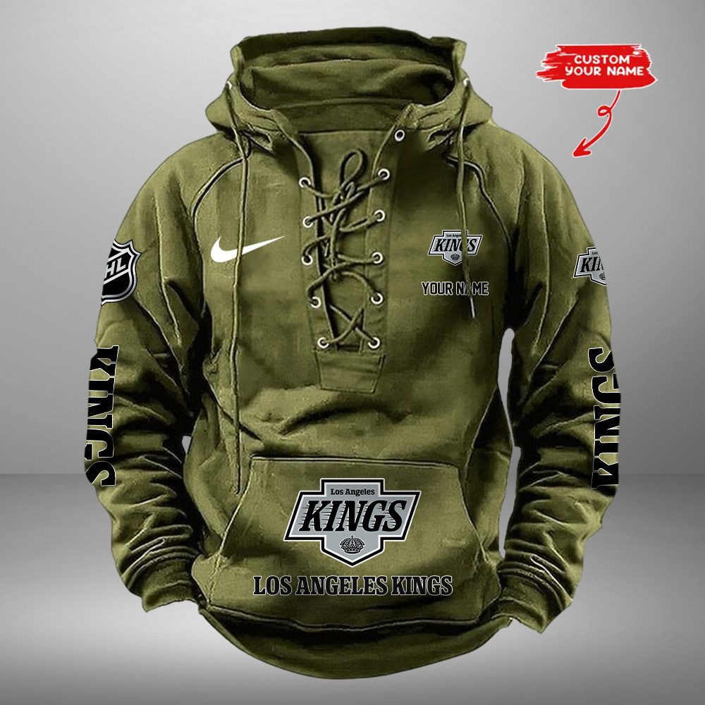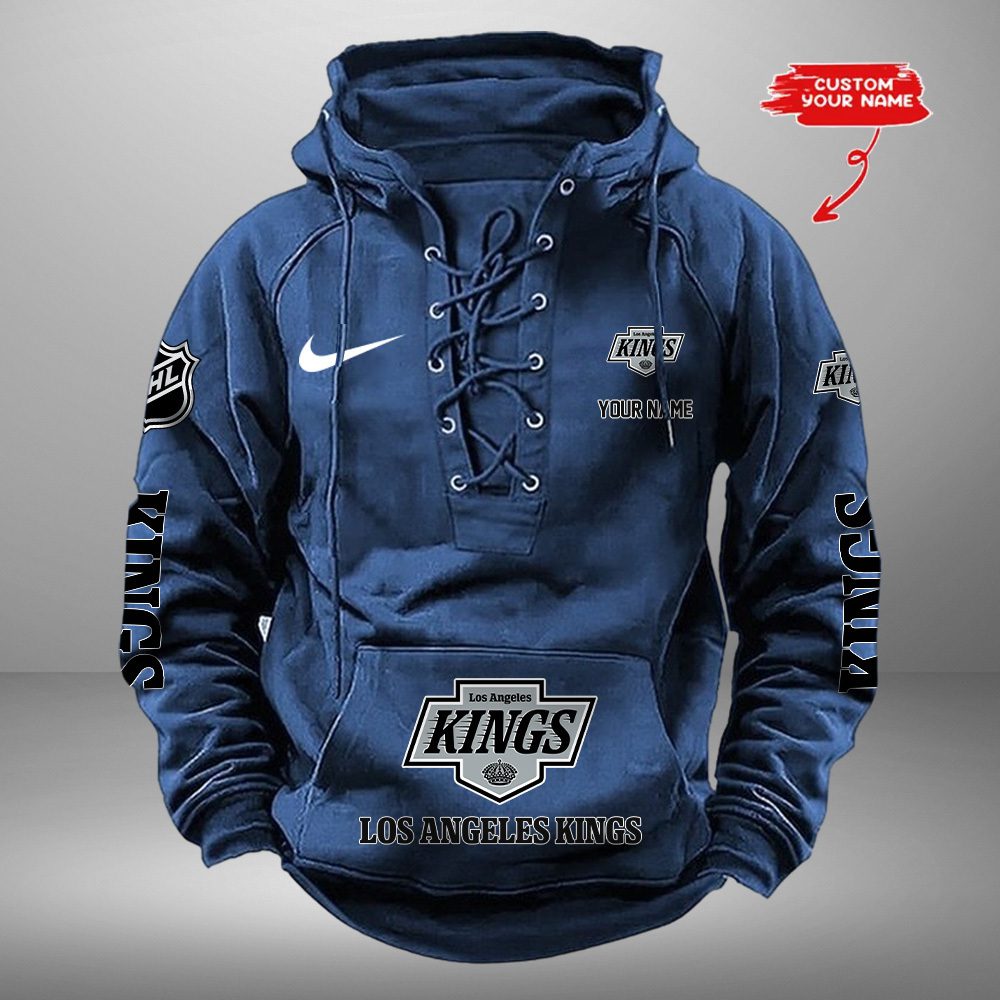 Los Angeles Kings NHL Retro Lace Up Hoodie Custom Name Mens Throwback