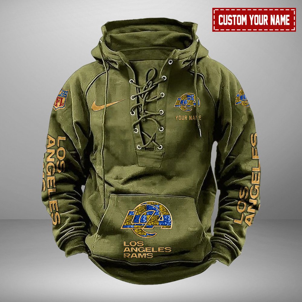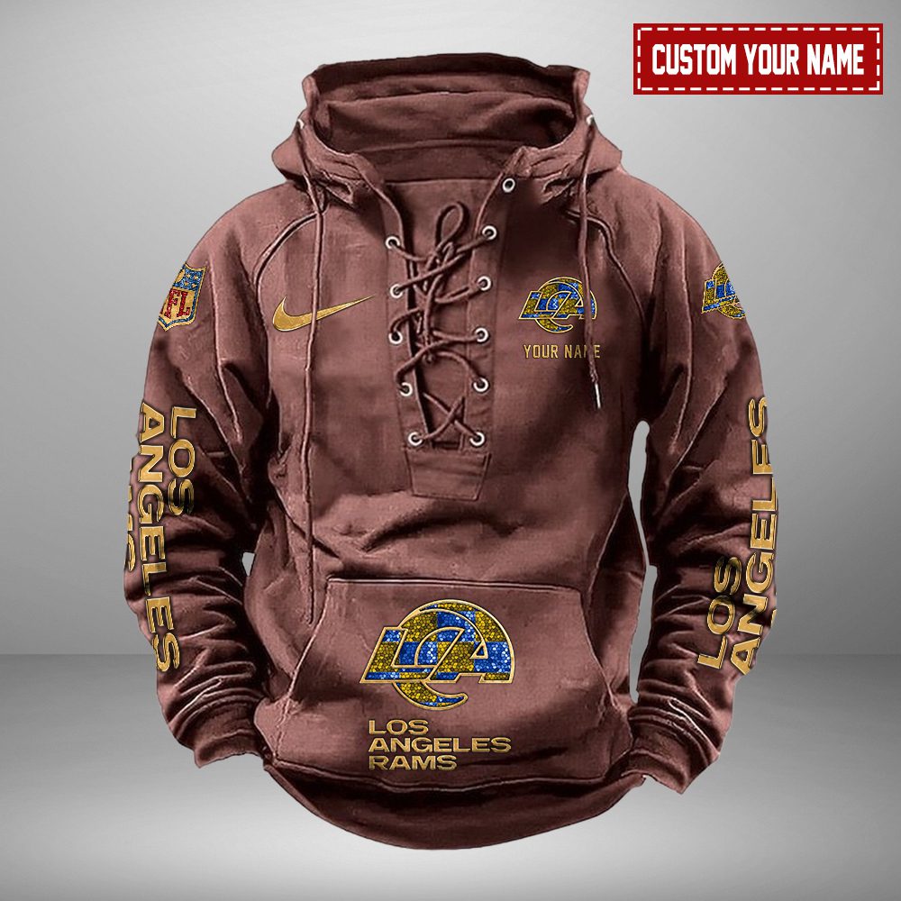 Los Angeles Rams NFL Retro Lace Up Hoodie Personalized Mens Vintage
