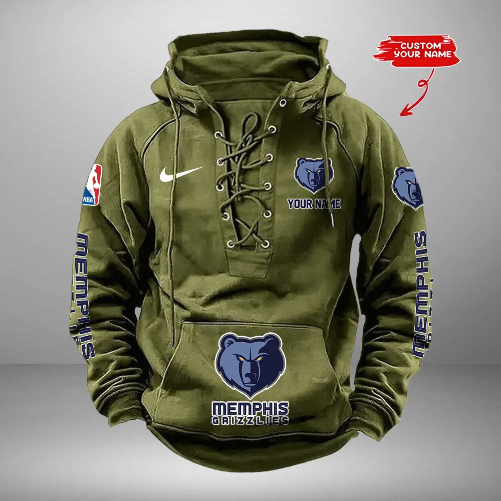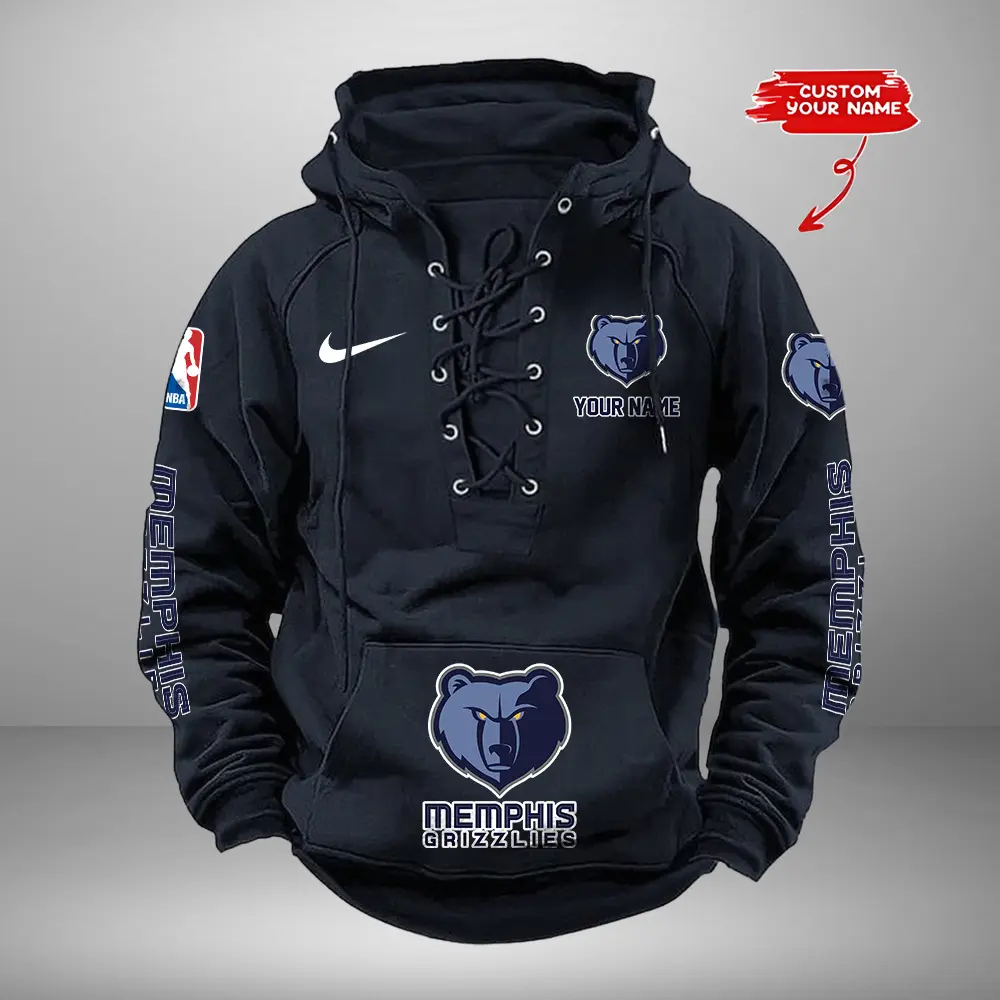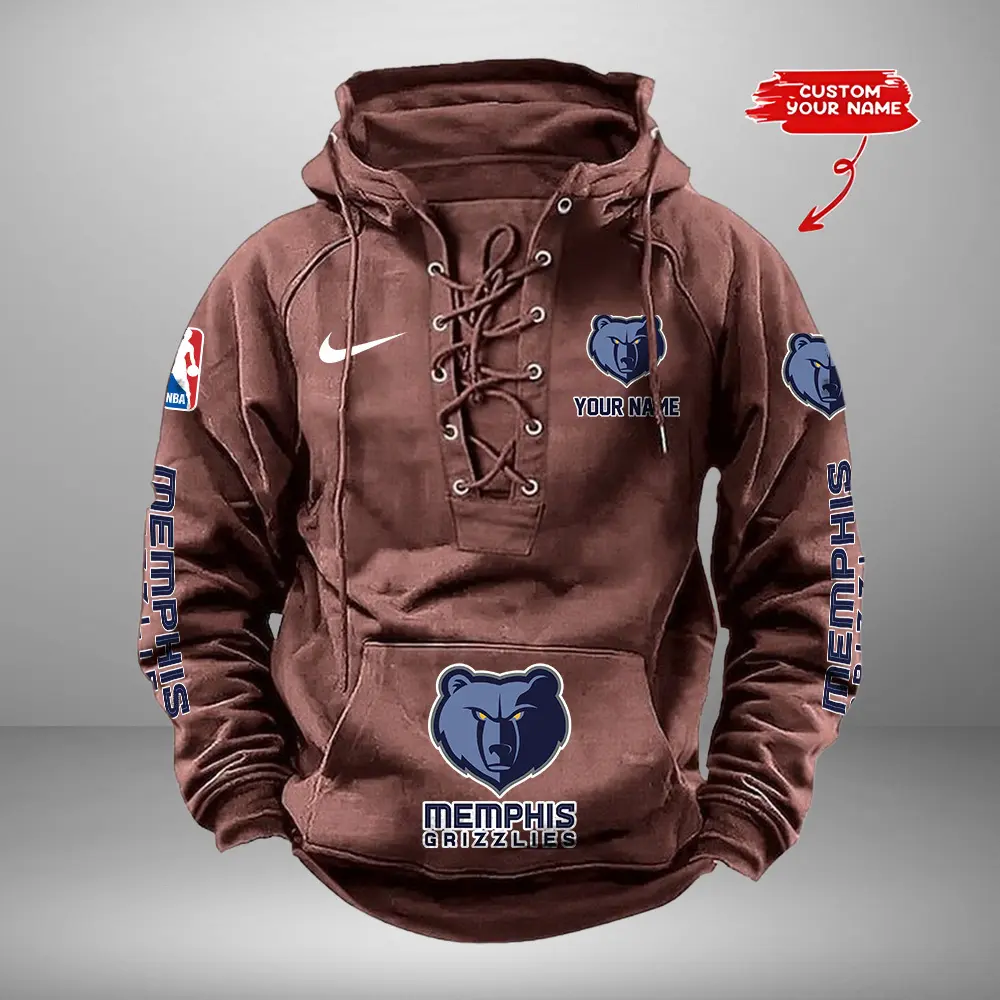 Memphis Grizzlies NBA Retro Lace Up Hoodie Personalized Mens Throwback