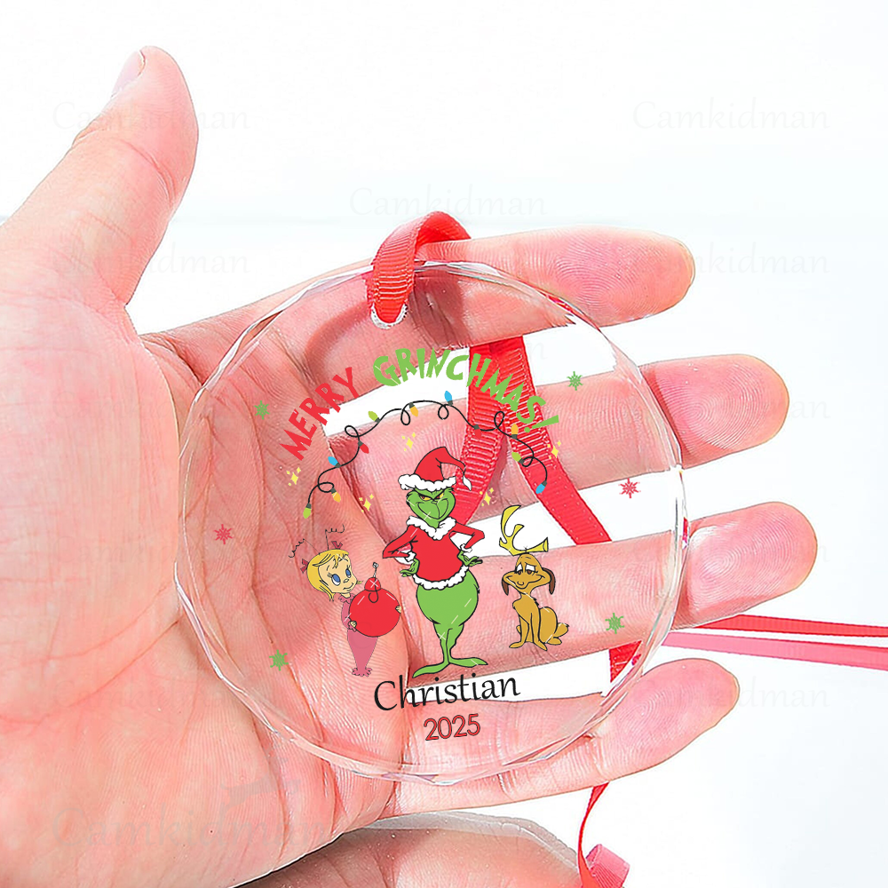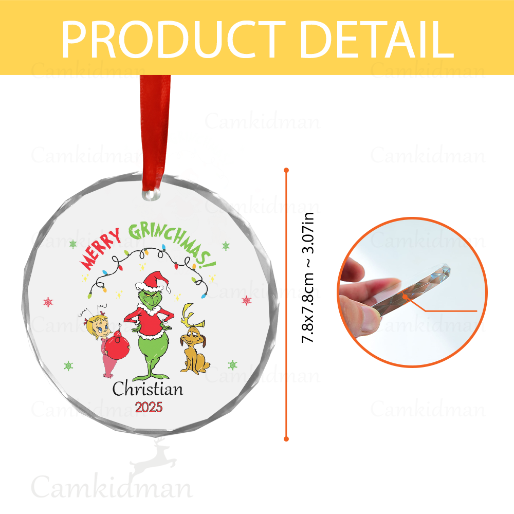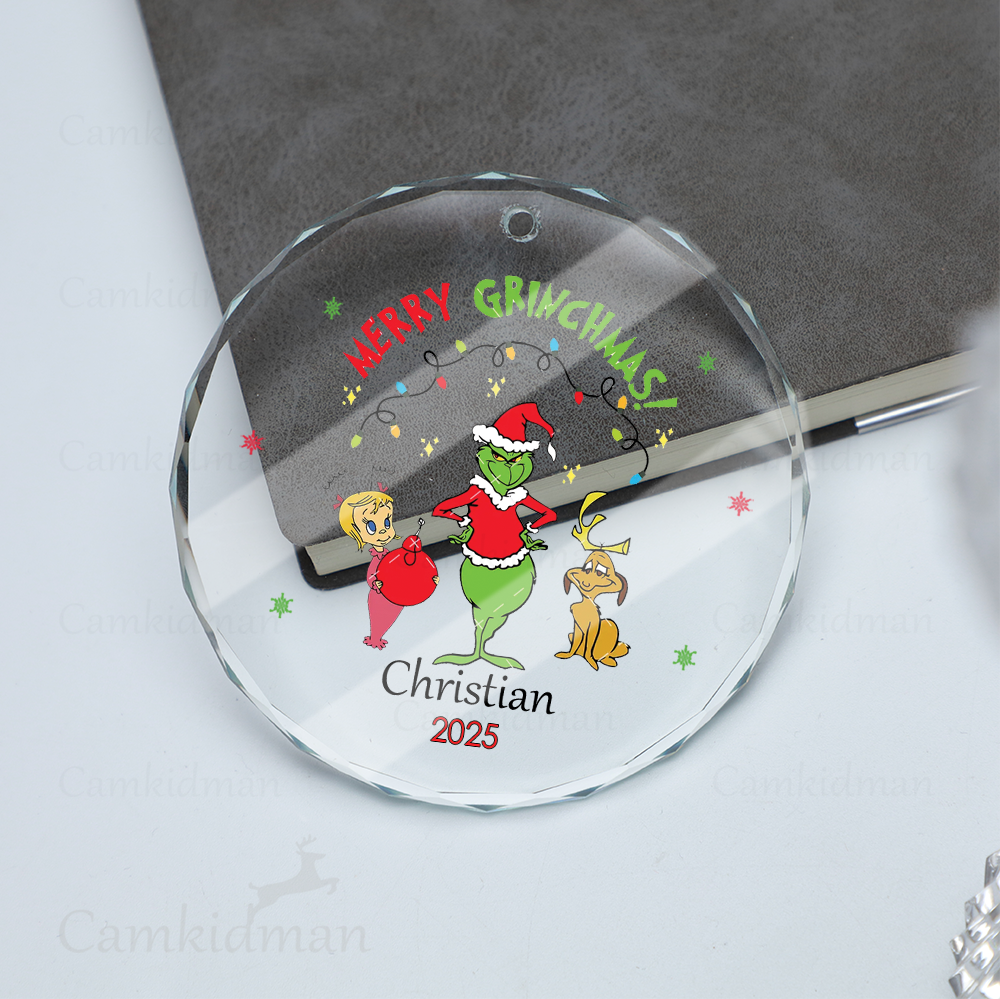 Merry Grinchmas Cartoon Style 2025 Round Holiday Glass Christmas Ornament