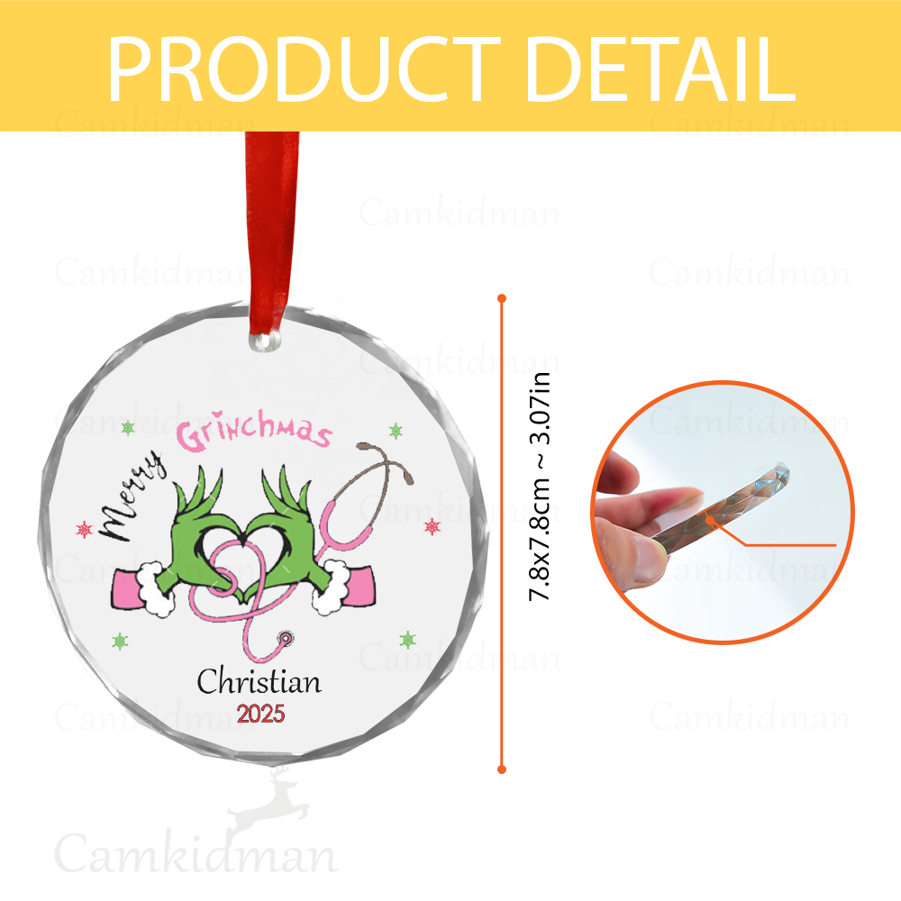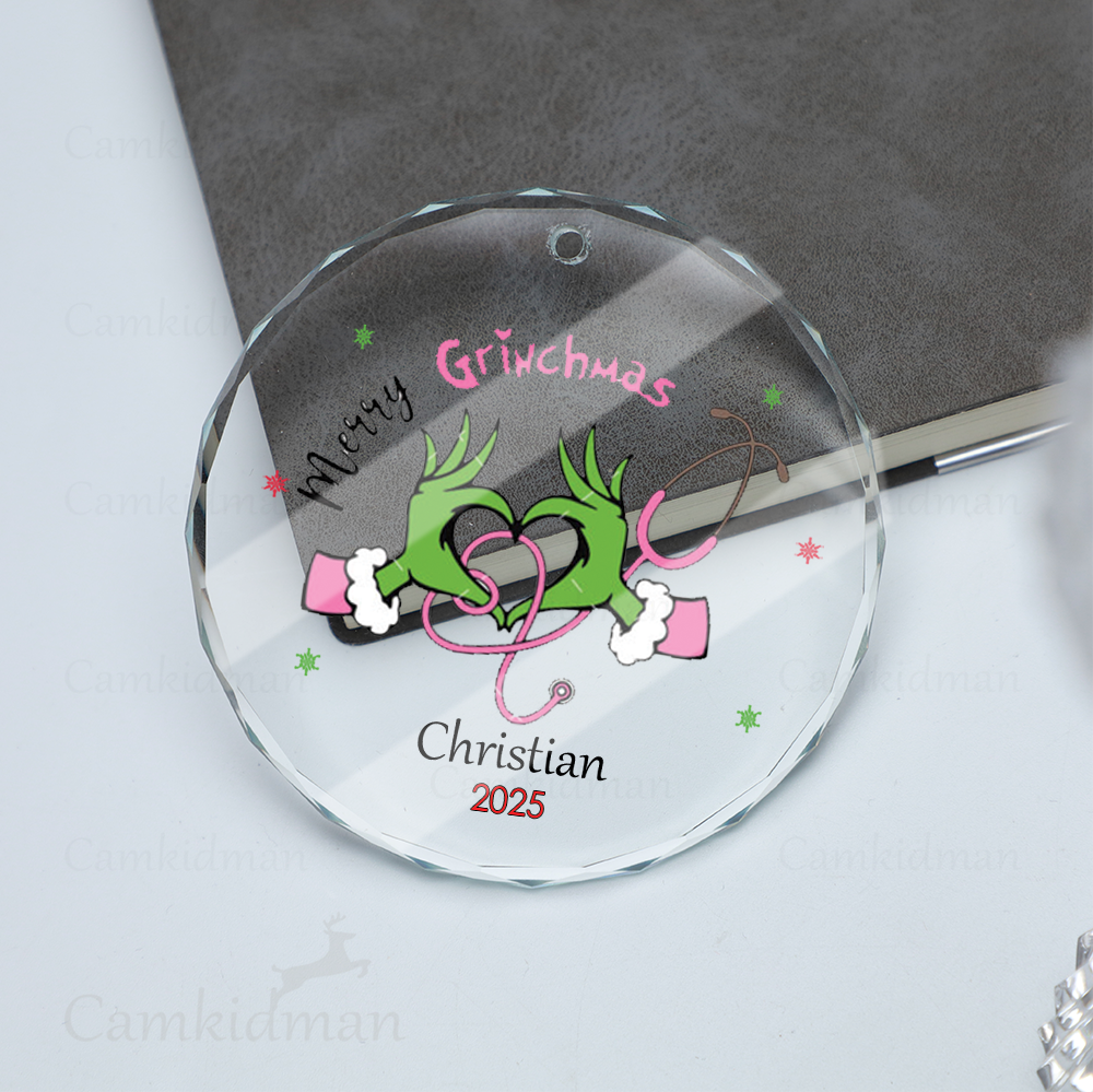 Be the first to review “Merry Grinchmas Heart Hands 2025 Holiday Keepsake Glass Christmas Ornament”