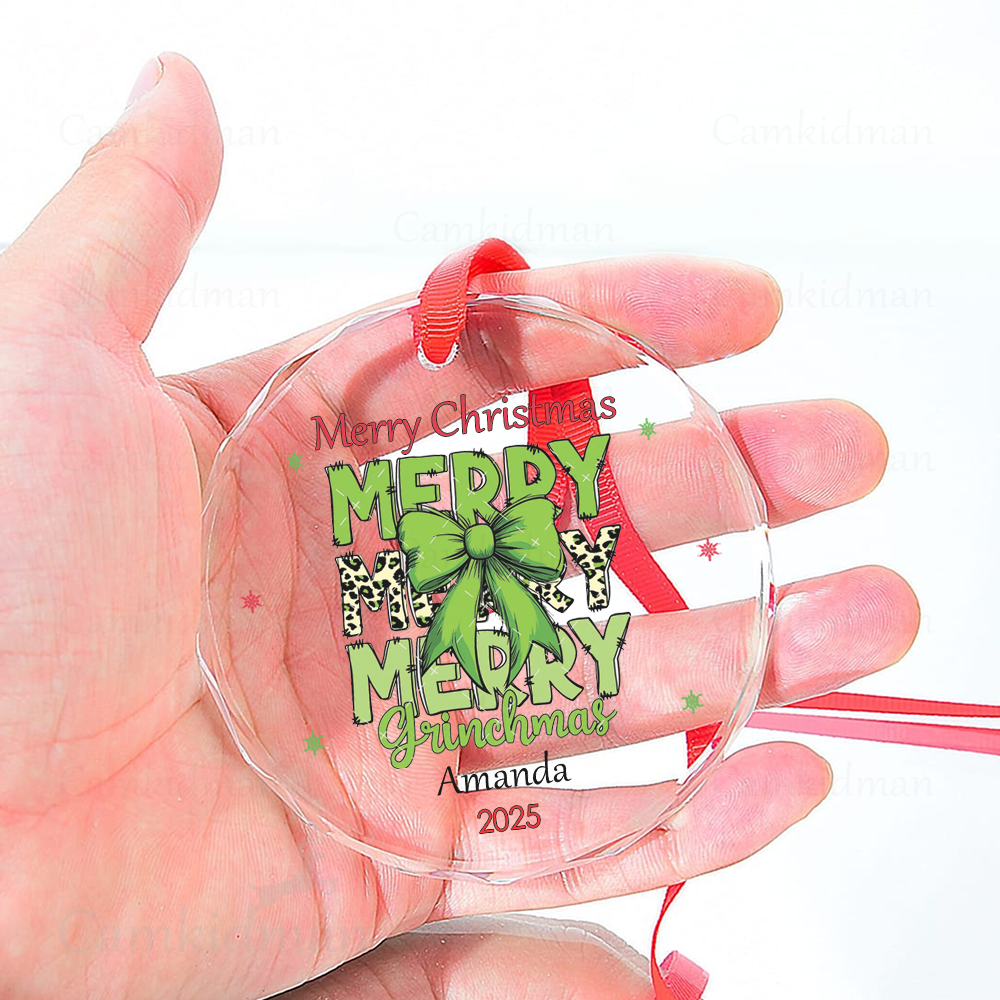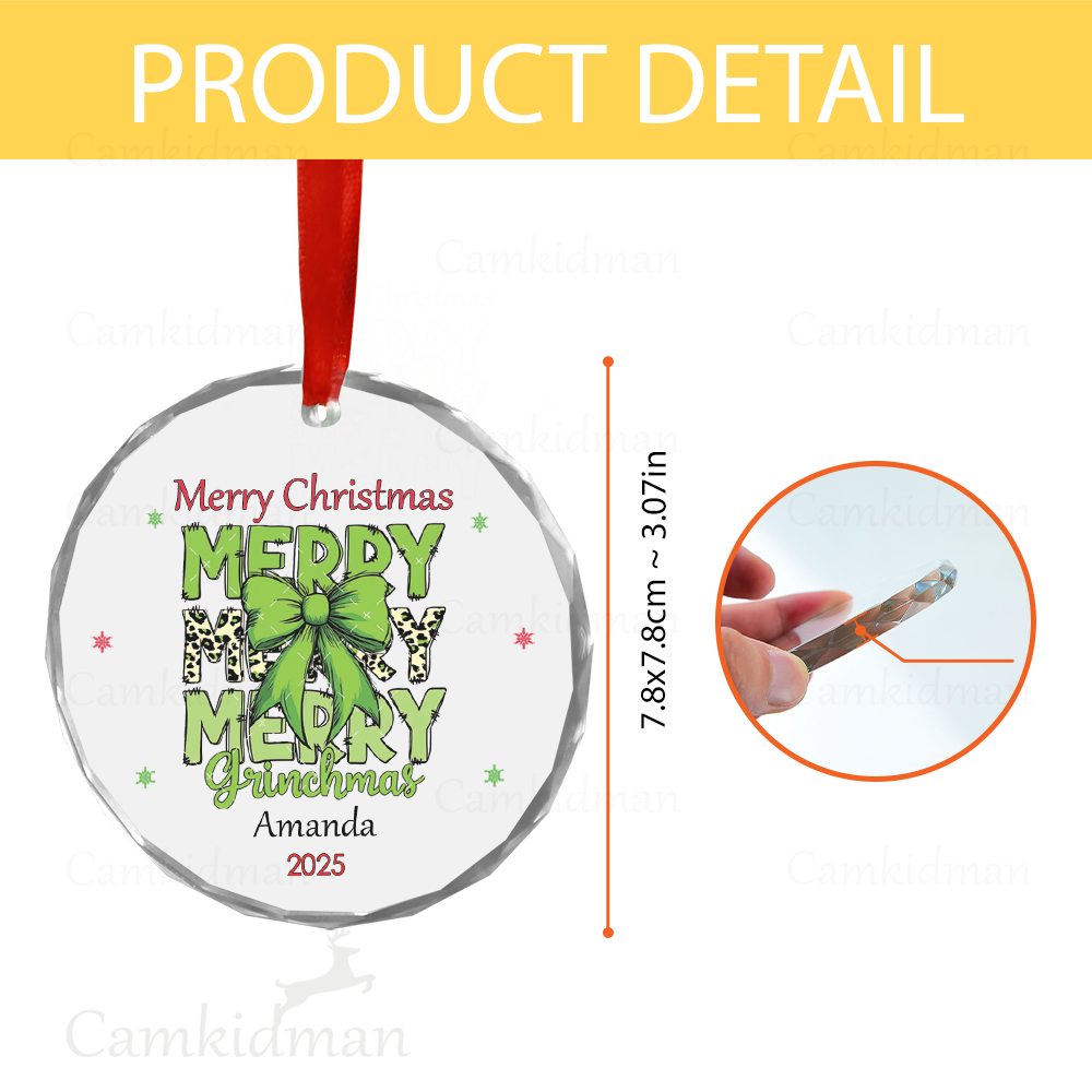 Merry Merry Merry Grinch 2025 Round Glass Christmas Ornament 2025 Personalized Name