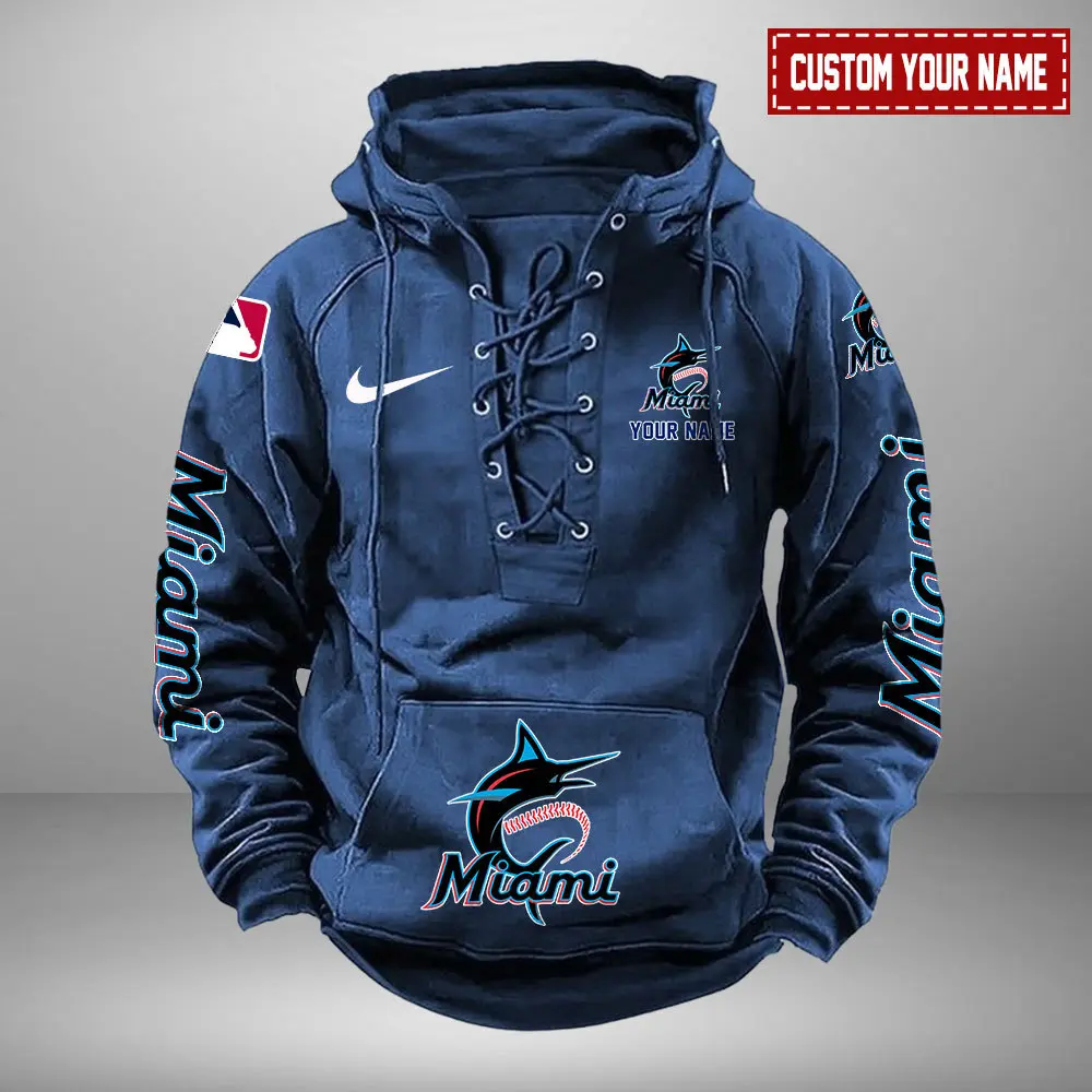 Miami Marlins MLB Retro Lace Up Hoodie Personalized Mens Vintage