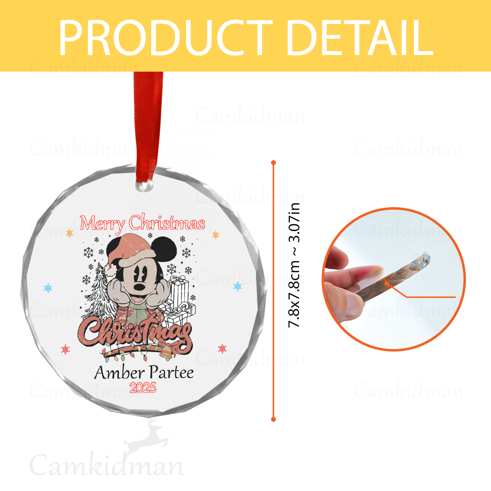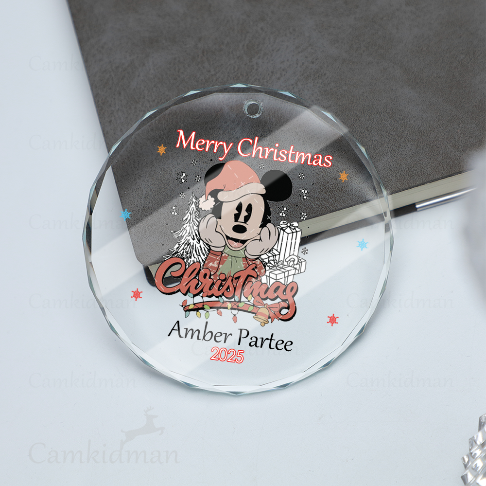 Mickey Classic Personalized Name 2025 Christmas Glass Ornament