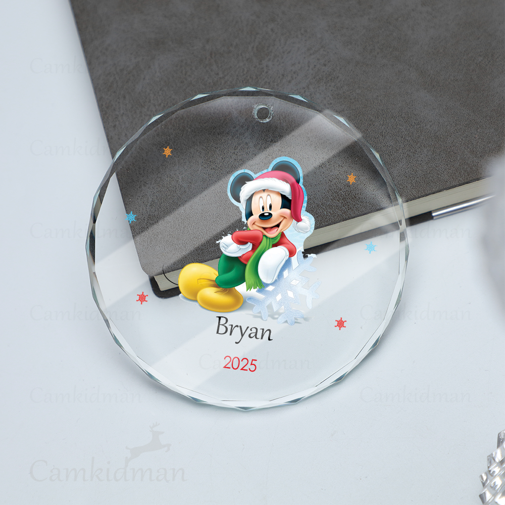 Mickey Ice Skating Personalized Name 2025 Glass Ornament gifts family