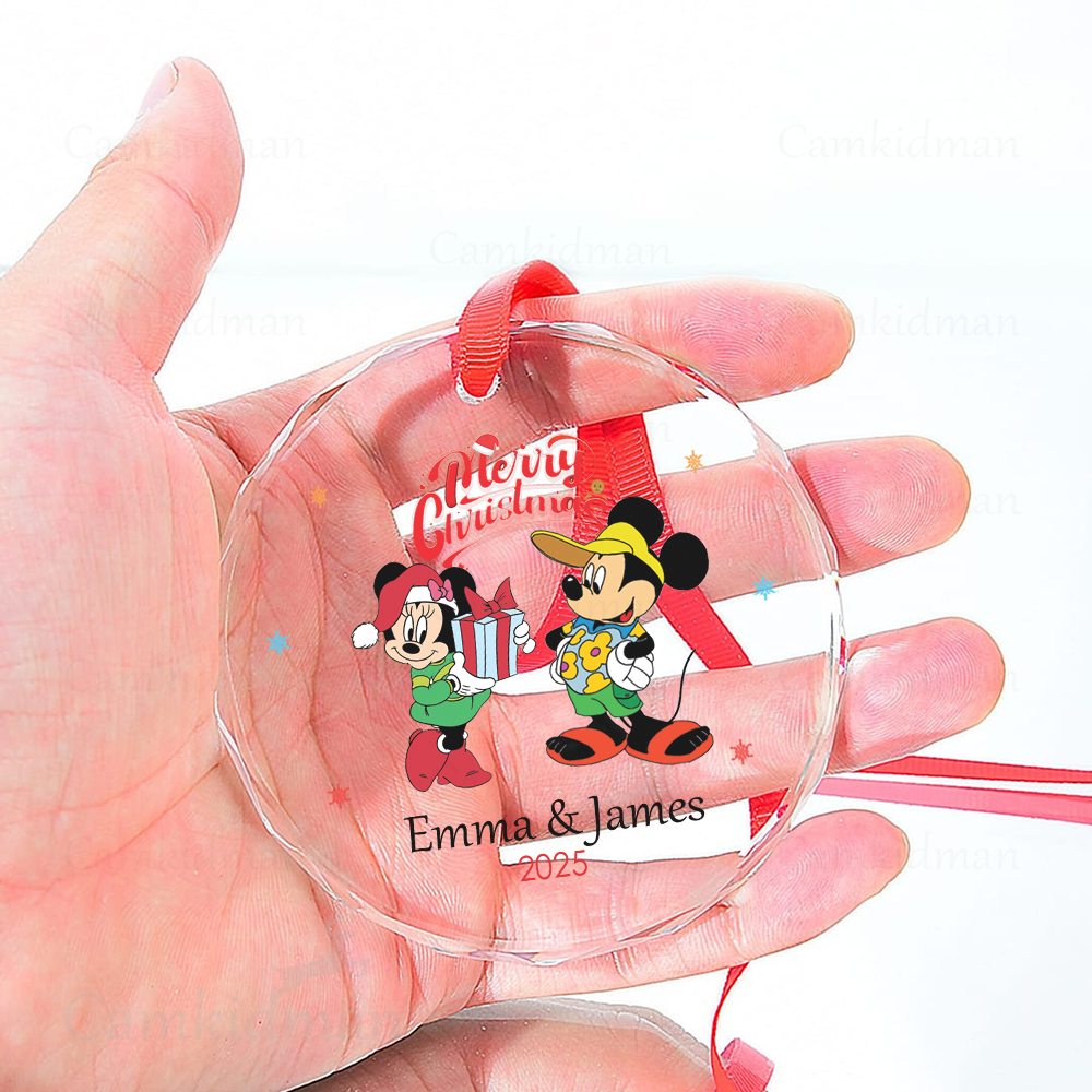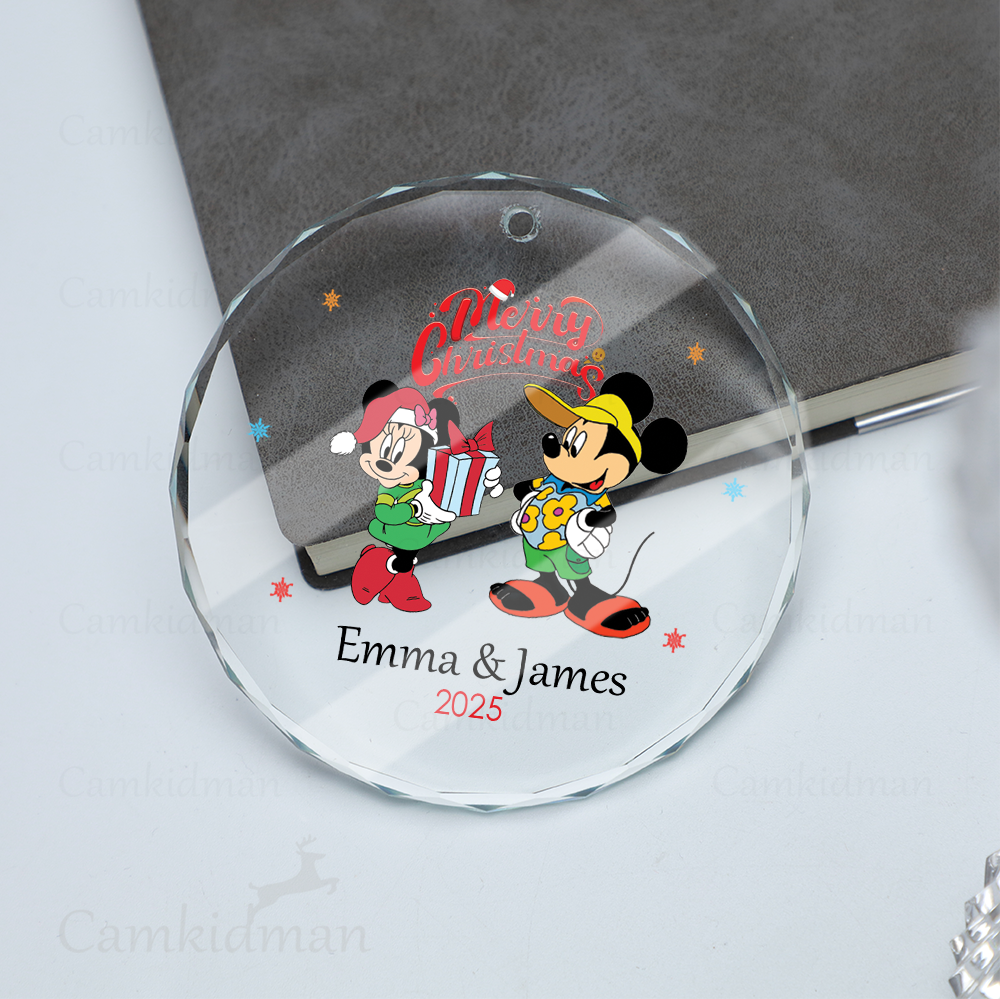 Mickey Minnie Couple Glass Christmas Ornament 2025 Personalized Name gifts family