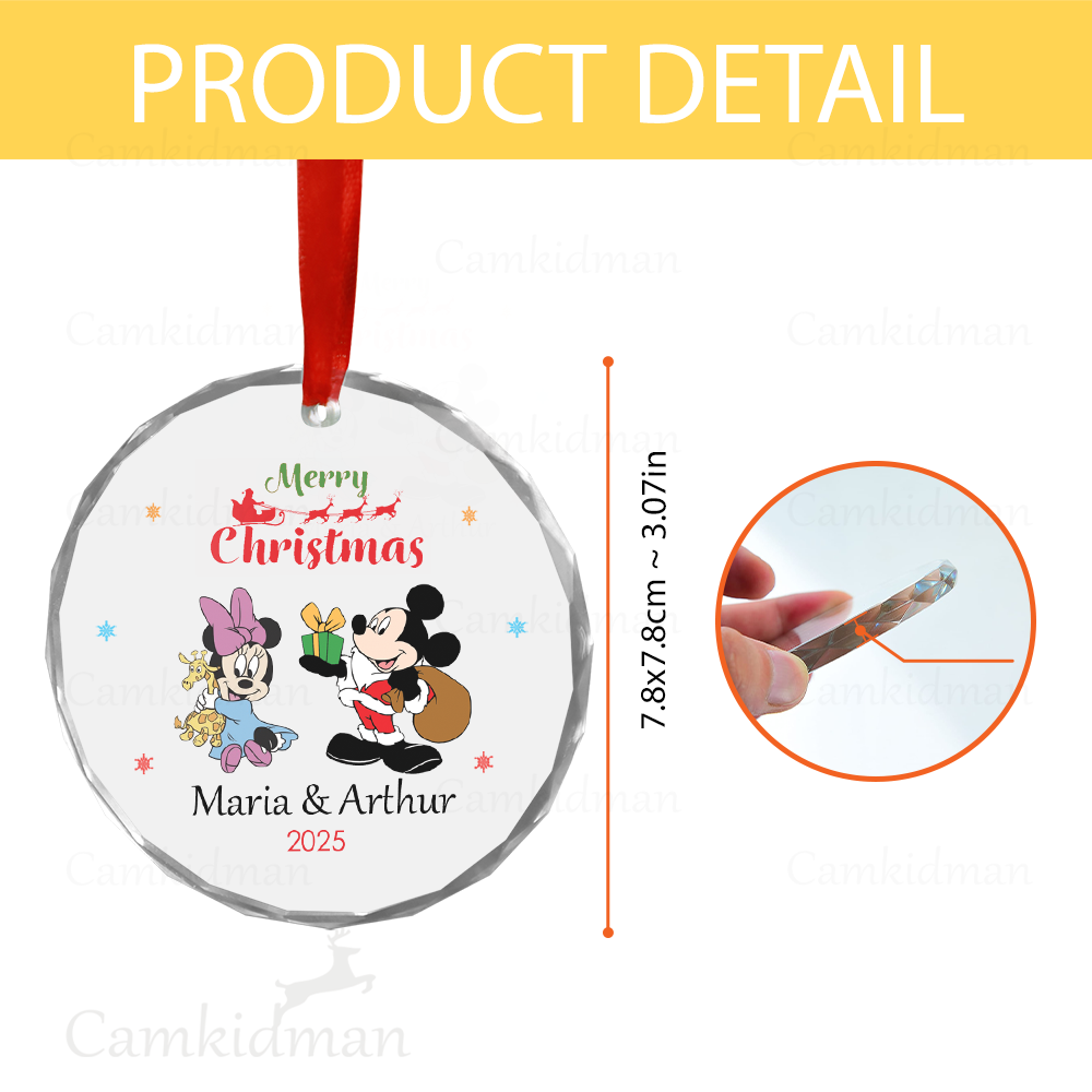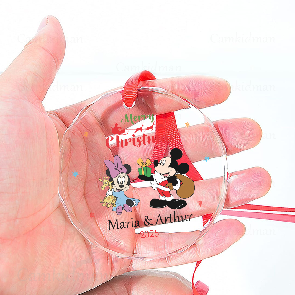 Mickey Minnie Couple Glass Christmas Ornament 2025 Personalized Name gifts family