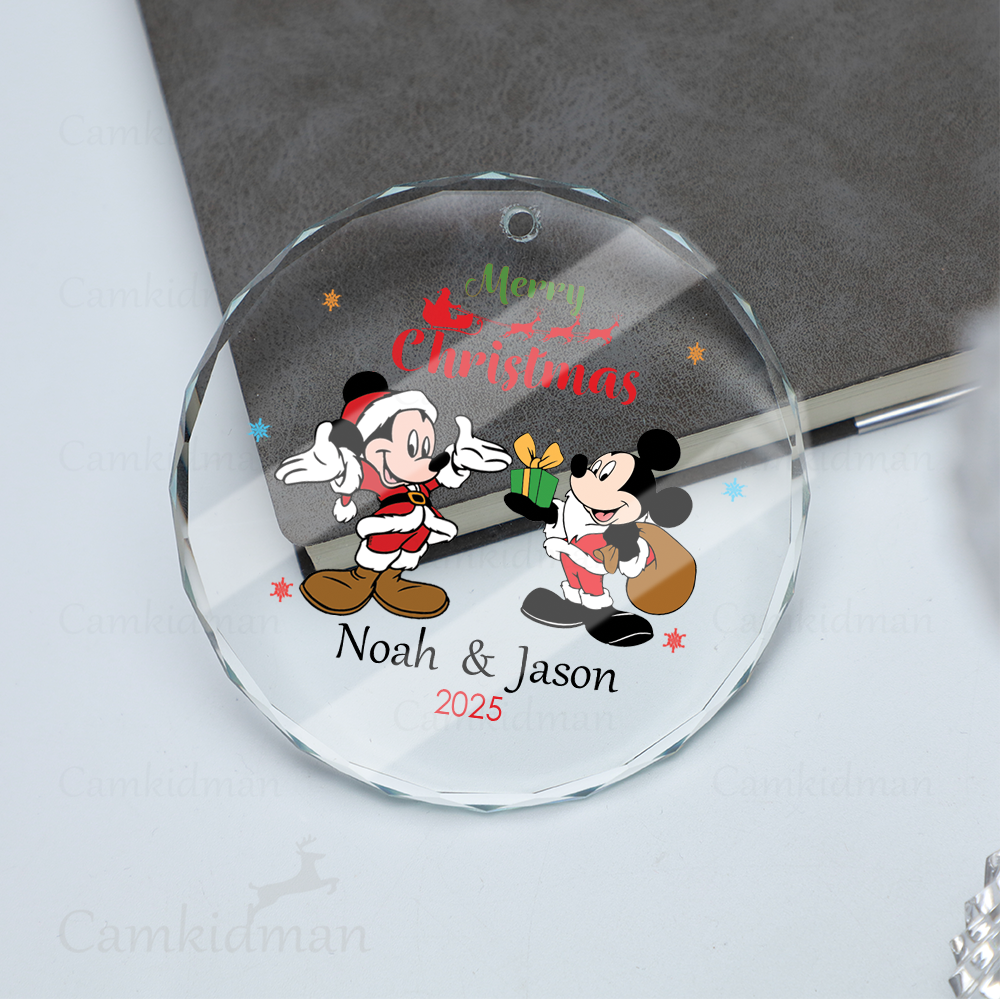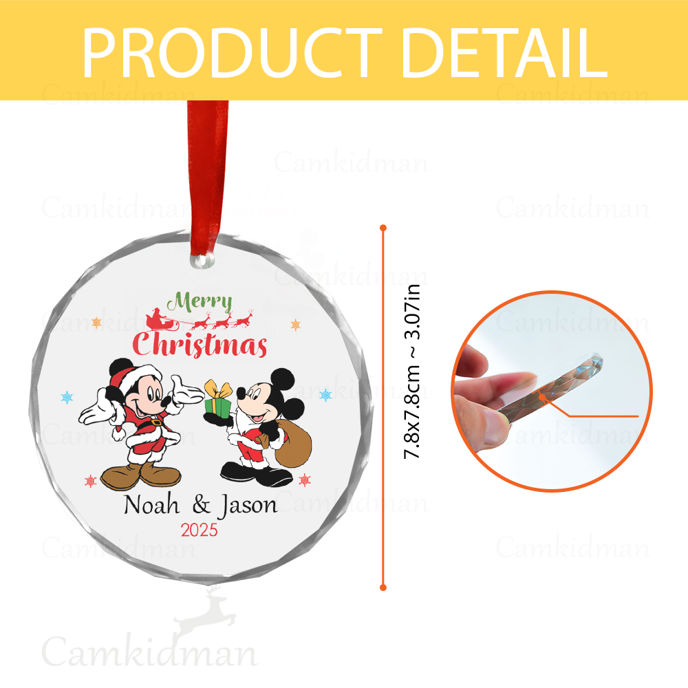 Mickey Minnie Couple Glass Christmas Ornament 2025 Personalized Name gifts family