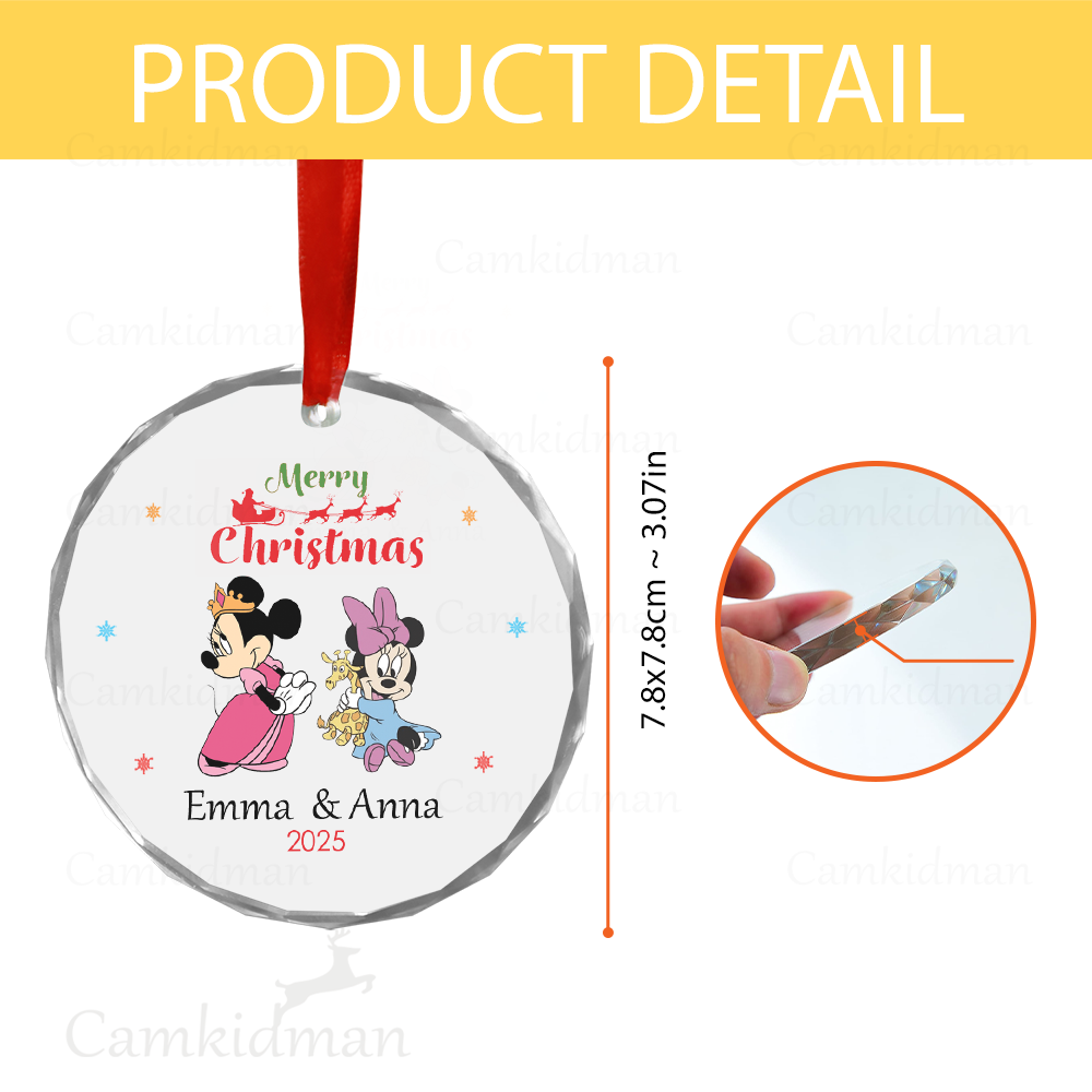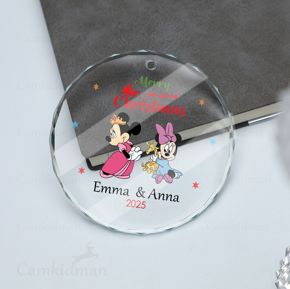 Mickey Minnie Couple Glass Christmas Ornament 2025 Personalized Name tree