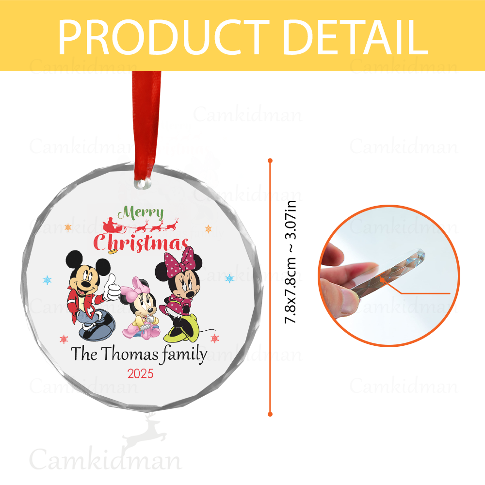 Mickey Minnie Couple Hug Glass Christmas Ornament 2025 Personalized Name gifts family