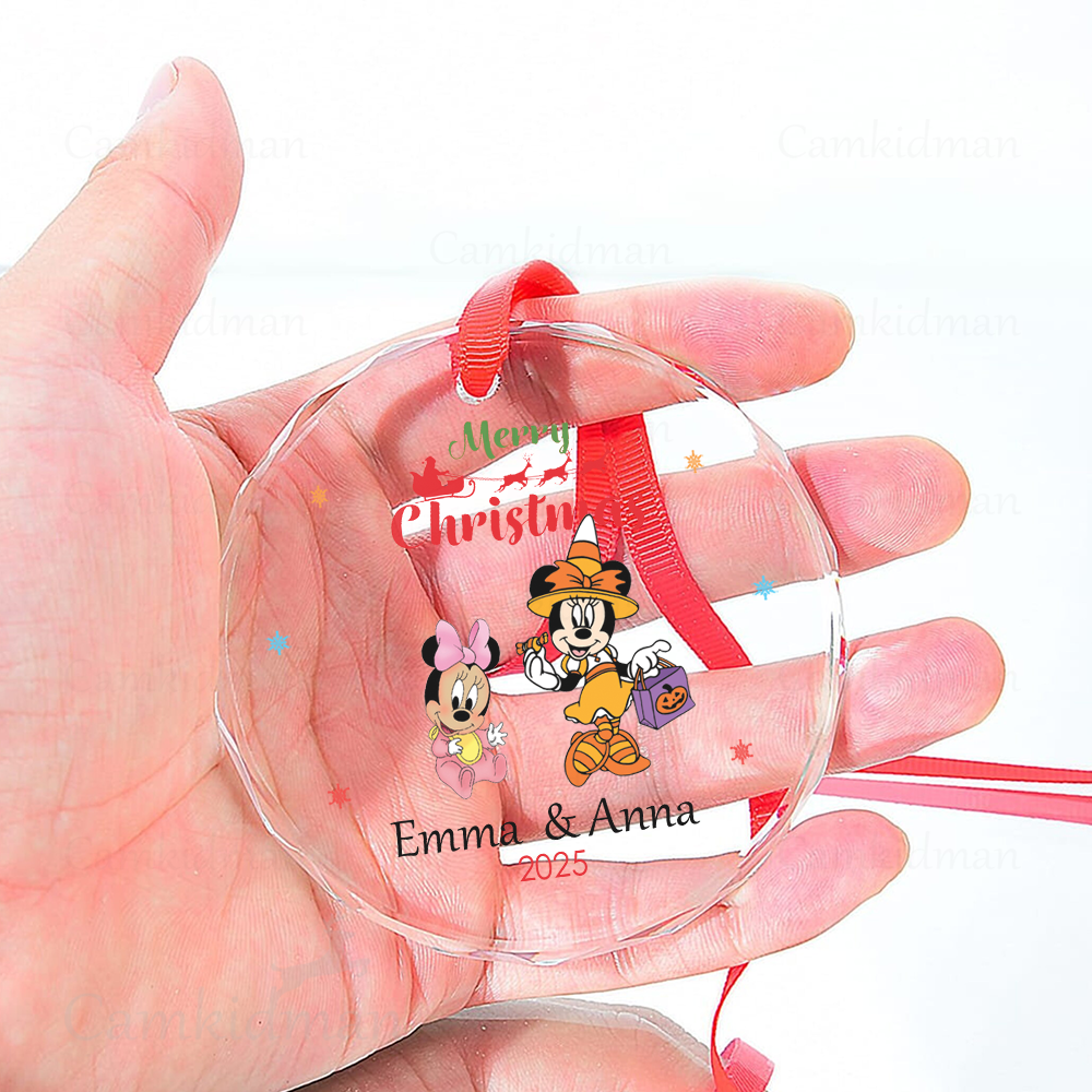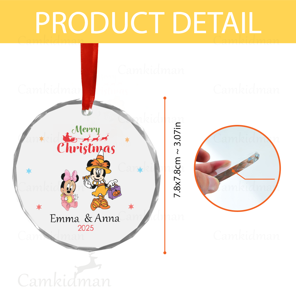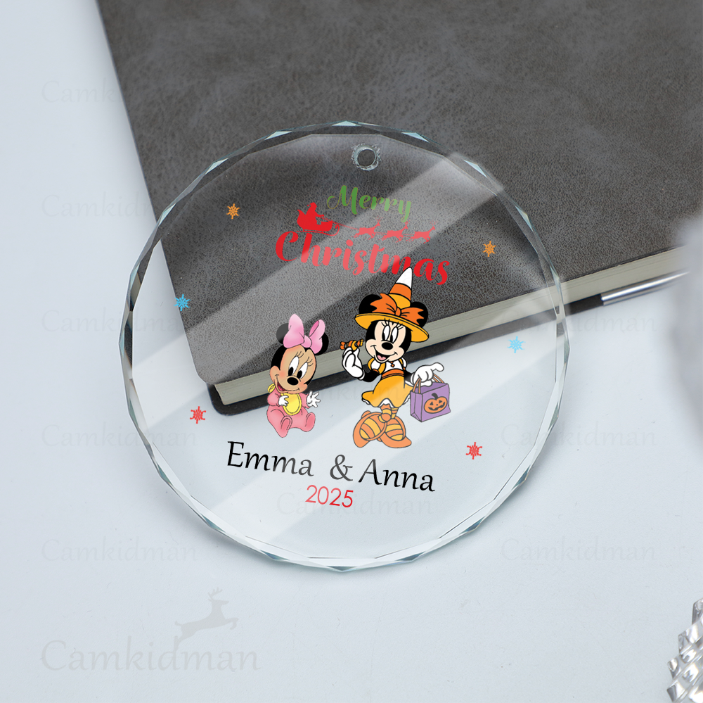 Mickey Minnie Couple Personalized Name 2025 Glass Ornament gifts kids