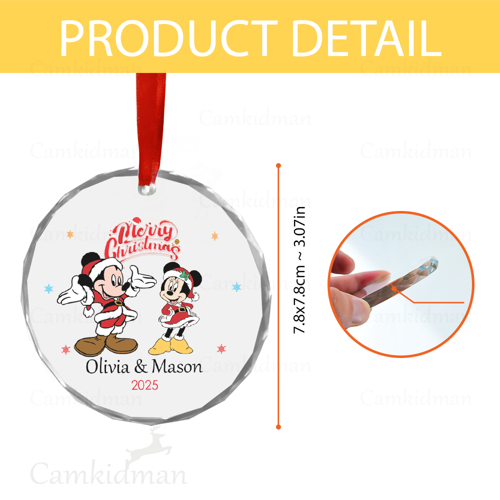 Mickey Minnie Dance Glass Christmas Ornament 2025 Personalized Name tree