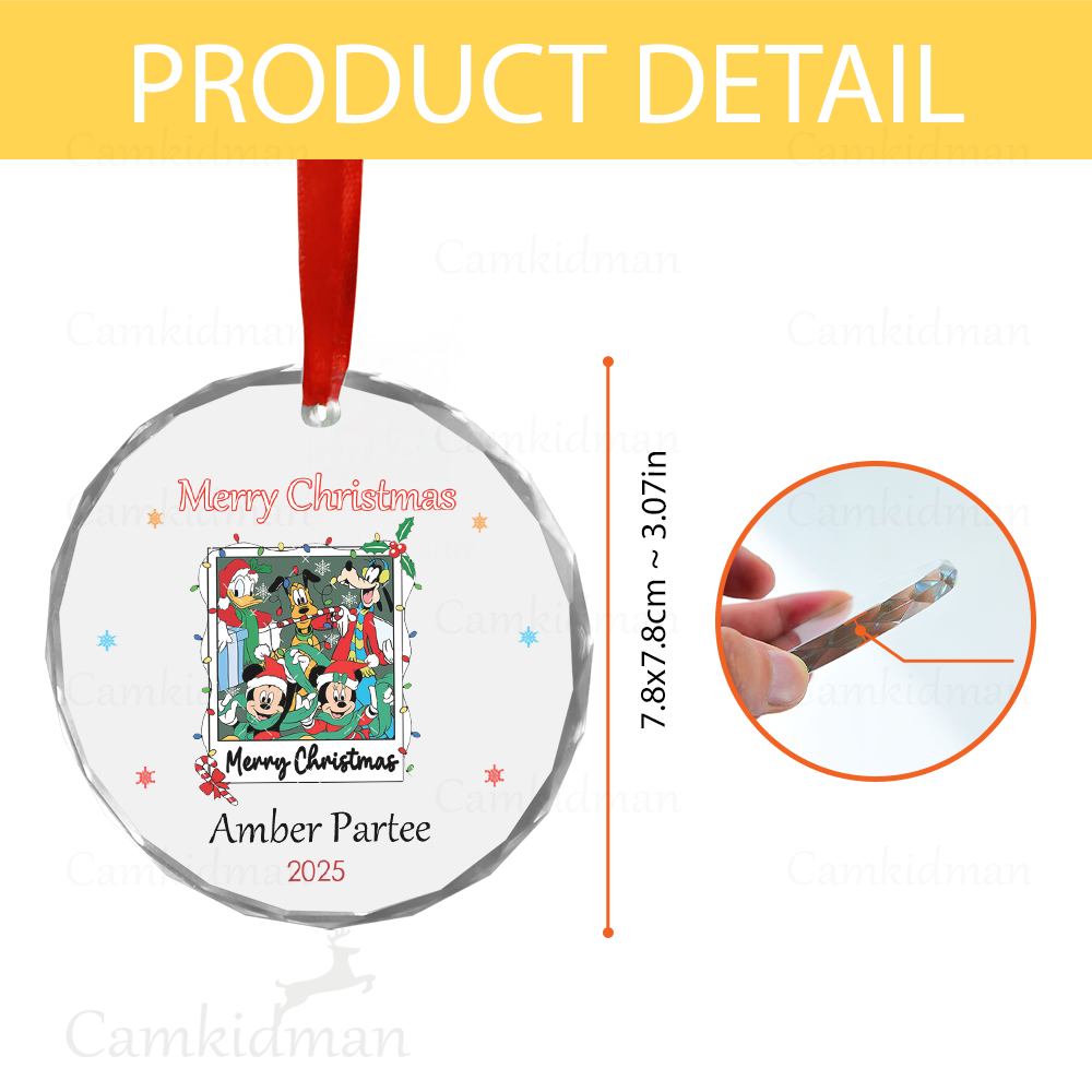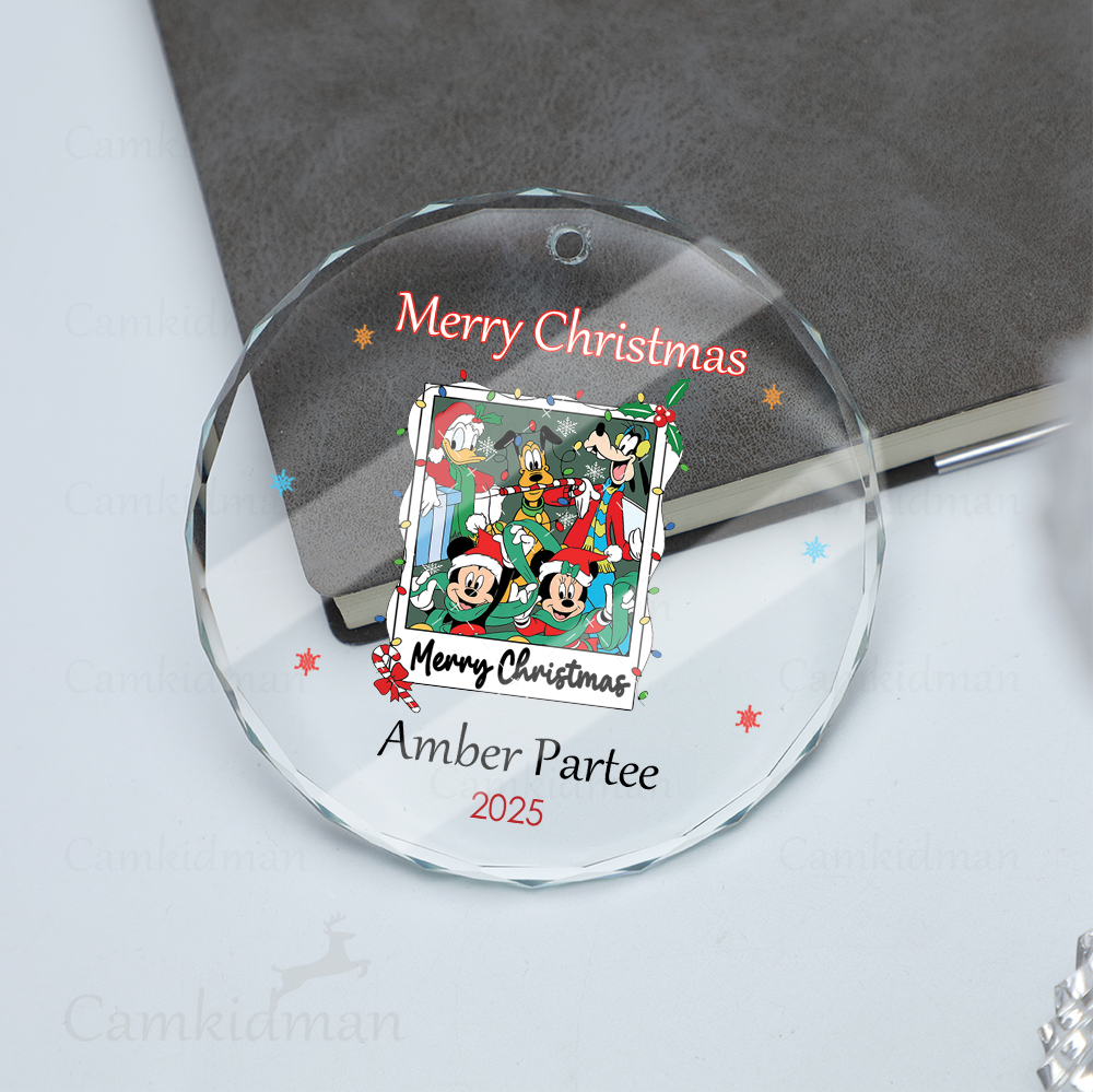 Mickey Minnie Holiday Frame Personalized Name 2025 Glass Ornament