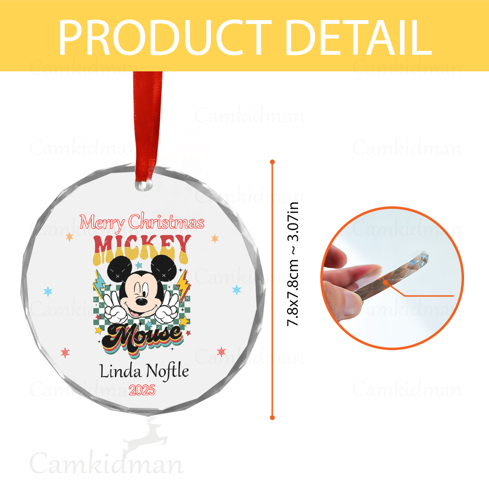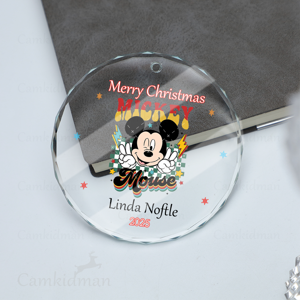 Mickey Mouse Personalized Name 2025 Christmas Glass Ornament gifts